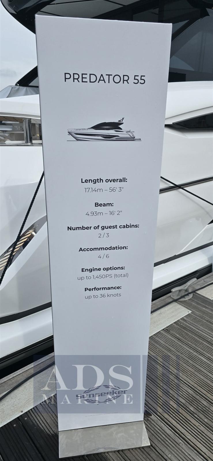 nouveau Sunseeker Predator 55 2025, équipé de deux moteurs Volvo Penta IPS 900 2x 725 ch et construit selon les spécifications standard de l’usine :