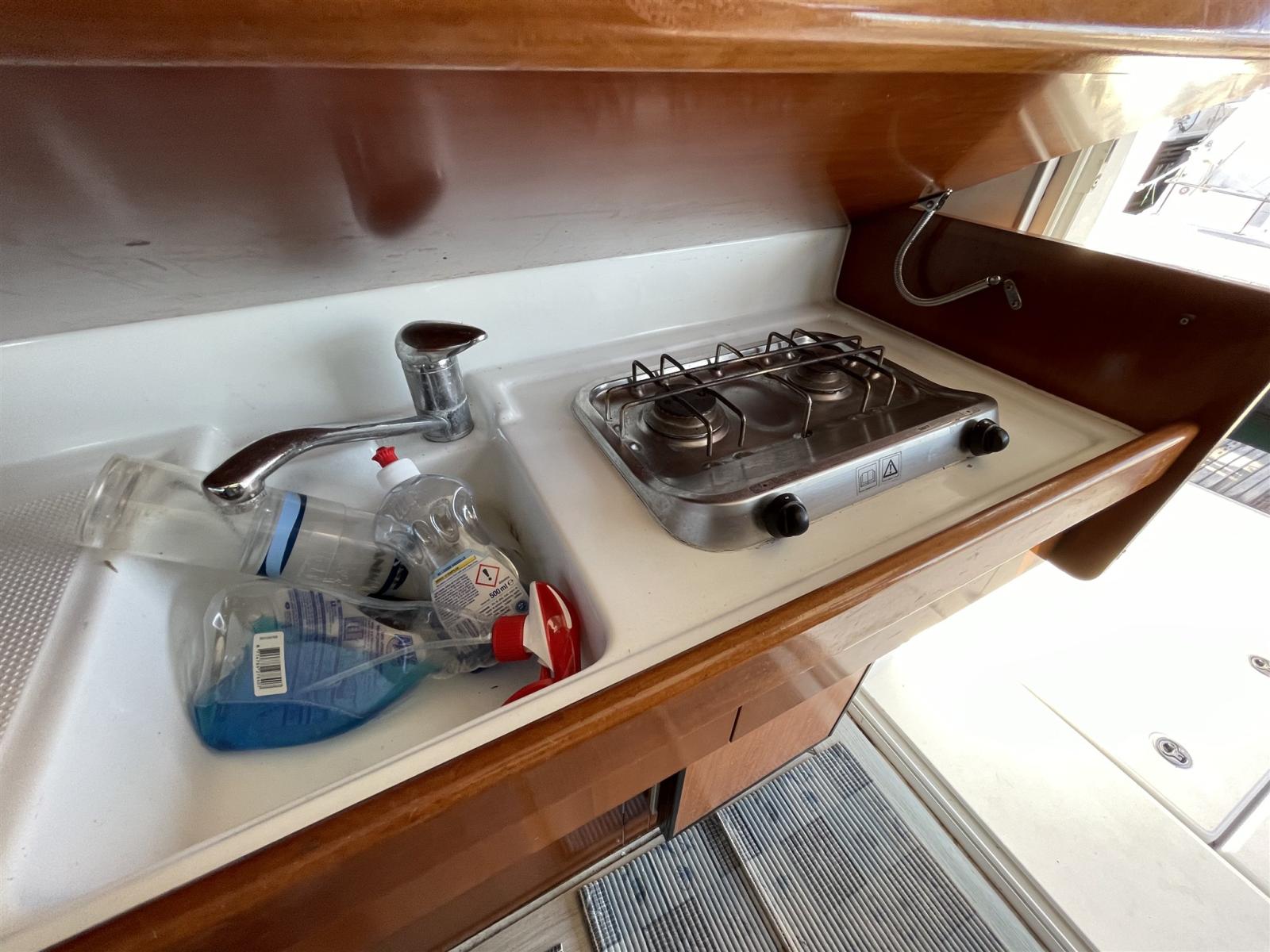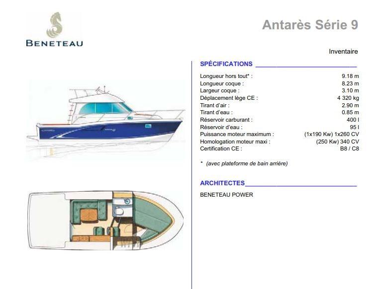 Eau sous pression, 2 Batteries (1 moteurs, 1 service), Douche de cockpit, Double barre à roue, Plateforme arrière (Teck), Pompe de cale automatique, Prise de quai, Guindeau électrique (avec télécommande), Echelle de bain.