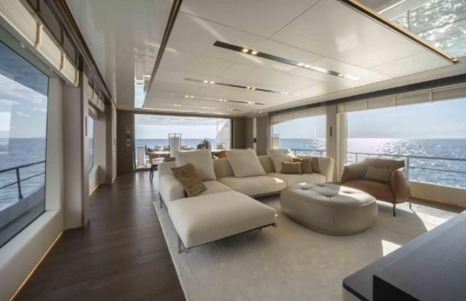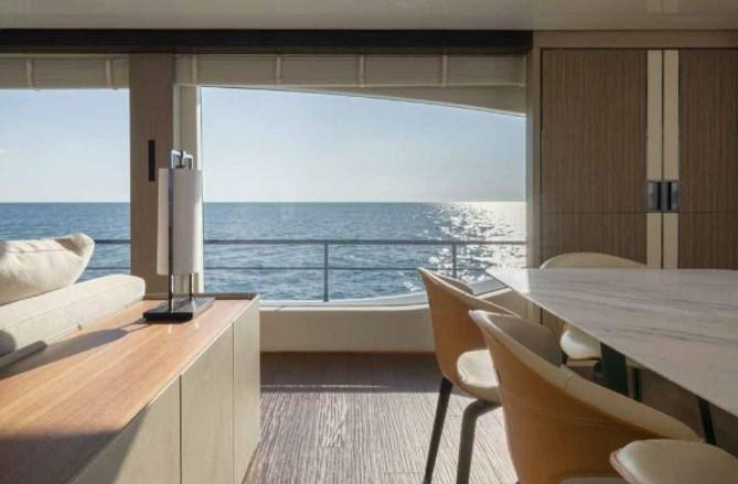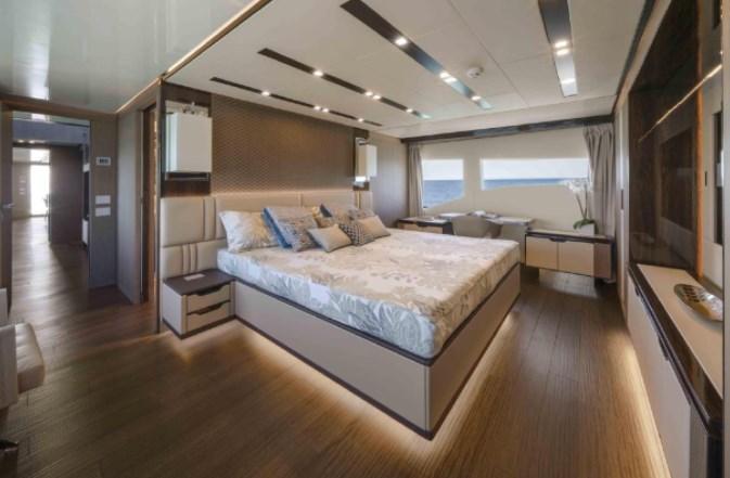 The new MAIORA 30 WALK-AROUND is designed, engineered, and built by the historical shipyard based in Viareggio, in close collaboration between the Centro Style Maiora and the design studio Quartostile in Turin. Awarded with the prestigious “Best Evolution” trophy and the World Yachts Trophies Awards in Cannes, this model rewarded the shipyard for being able to develop new models, while maintaining the distinctive stylistic lines that have become typical of all MAIORA motor yachts. This new model can be registered under 24 meters, whilst she has an overall length of 30.50 meters, and a beam of 7.50 meters, the largest in her category. The internal volumes and external areas are comparable to a Superyacht of 35 metres/115 feet. The huge interior volumes are framed by large windows that allow much more light in, as well as a complete and wide view of the outside, giving the interior more habitability and an even more spectacular appearance: a continuous environment with the outside - thanks to a generous height of 215 cm, typical of larger motor yachts. It is on the main deck that the large available spaces are most appreciated: the bright saloon offers both a relaxation area with large sofas with chaise longue and coffee table, and the dining area with a table where there are comfortable seats for up to 10 people. The goal with such layout is to obtain areas dedicated to the crew, without disturbing the presence of guests on board. The crew has access to the side entrance to the galley, which leads to the lower deck where there is a large dinette complete with seating, table, refrigerator, sink, TV and monitor for CCTV control and monitoring of the boat. The laundry area consists of a washing machine and a dryer and is located adjacent to the crew dinette. 2 bunk-bedded cabins and a single cabin accommodate a total of 5 people and 2 bathrooms with shower, complete the area reserved for the crew. Access to the wheelhouse is from the hallway created between the door of the galley and the door of the living room for better a privacy for guests. The galley, very well-optimised for the best on-board functionality, offers the possibility to store food and drinks for long cruises, thanks to large refrigerators and freezers that provide a wide range of storage options. A generous wine cellar and an icemaker, as well as professional appliances and accessories, complete the equipment. The Master Stateroom, forward on the main deck, has been designed to enjoy a spectacular sea view even when in bed, and is equipped with a large bathroom with double sink. This suite is completed by a comfortable Vanity, which can be transformed into a desk if necessary. On the lower deck, the 4-cabin layout is designed with 2 VIP and 2 twin guest cabins complete with generous bathrooms and wardrobes with plenty of space.