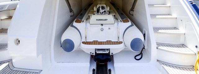Alarme moteur, Garage à annexe, Spots sous-marins (blue color), Passerelle (hydraulique), Plateforme arrière (hydraulique), Guindeau électrique, Annexe (Williams 386 - 66h).