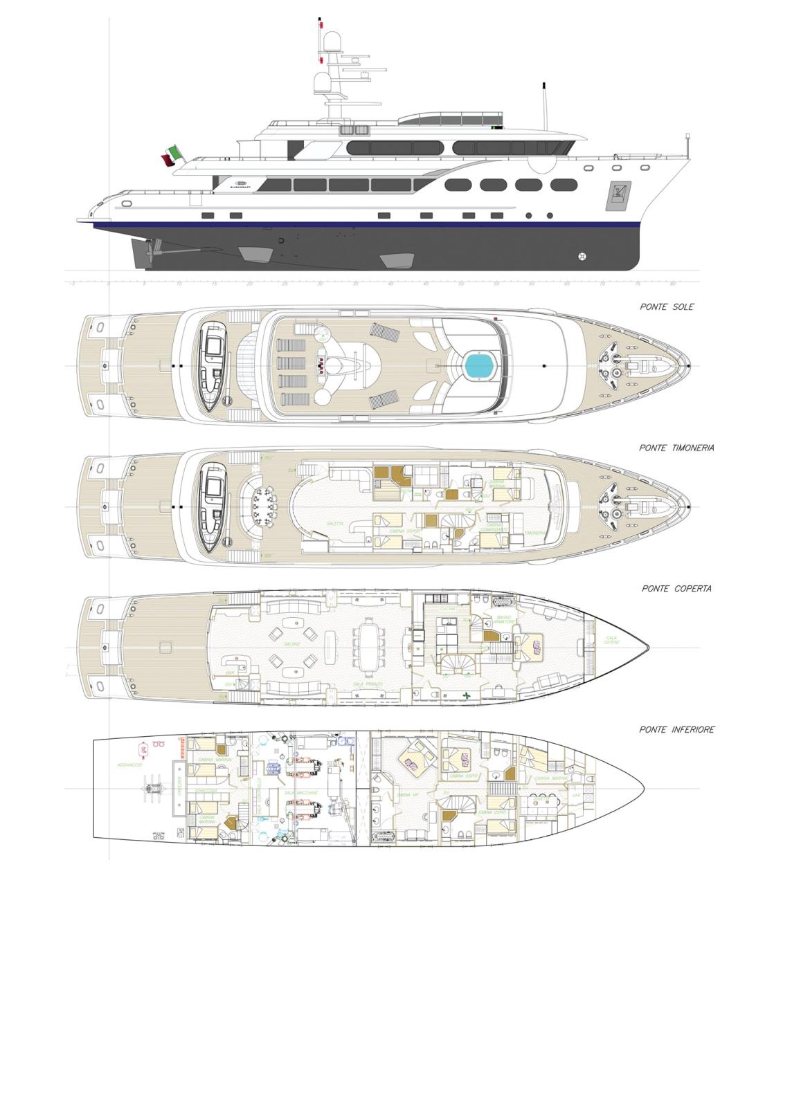 Il est doté de 4 stabilisateurs Najad zéro speed garantissant le maximum de confort en navigation et au mouillage.