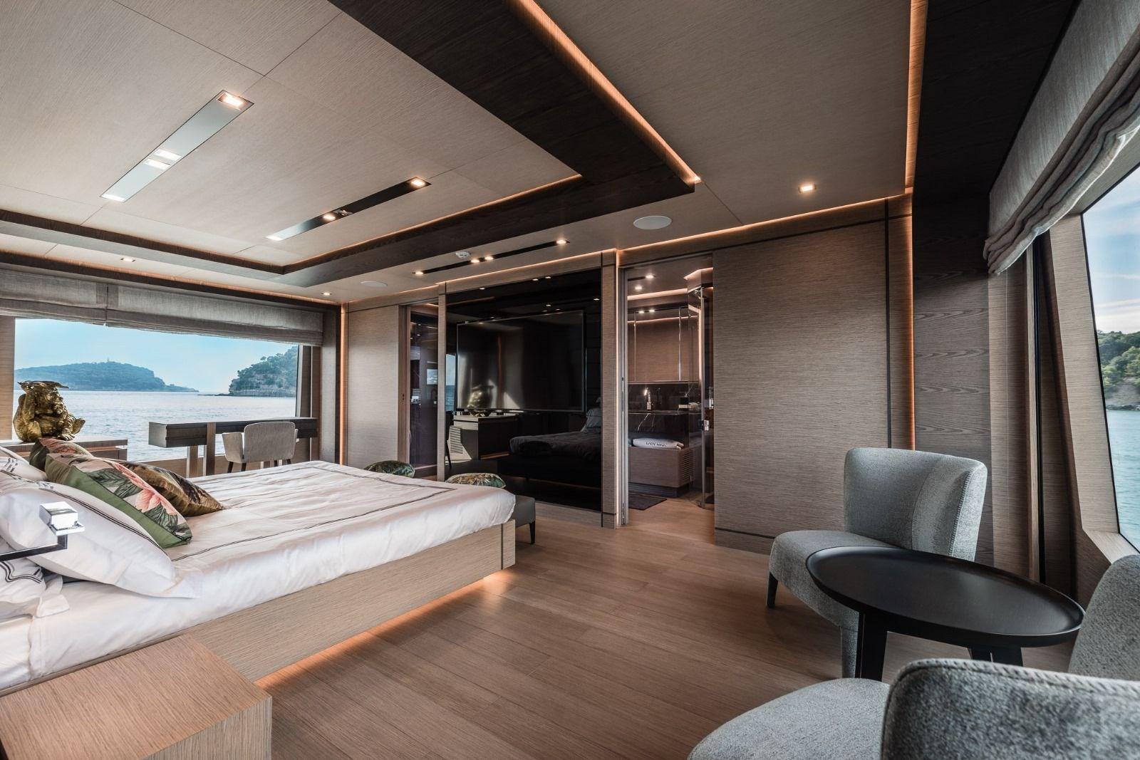 – Master Suite on the main deck, full beam and super beamy (and several options for expansion/reconfiguring, like a private gym or studio or massage room or playroom or library or…….);
