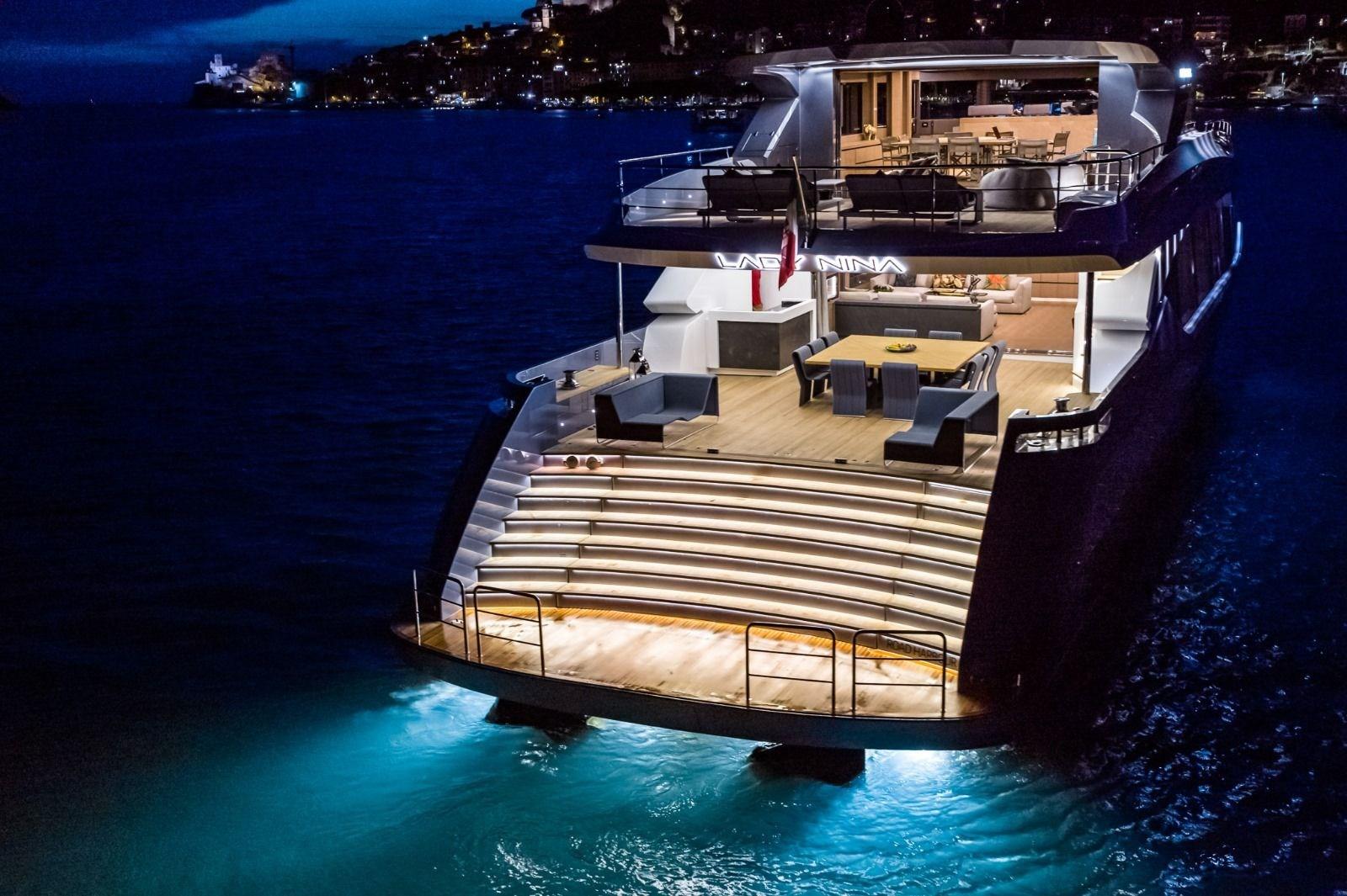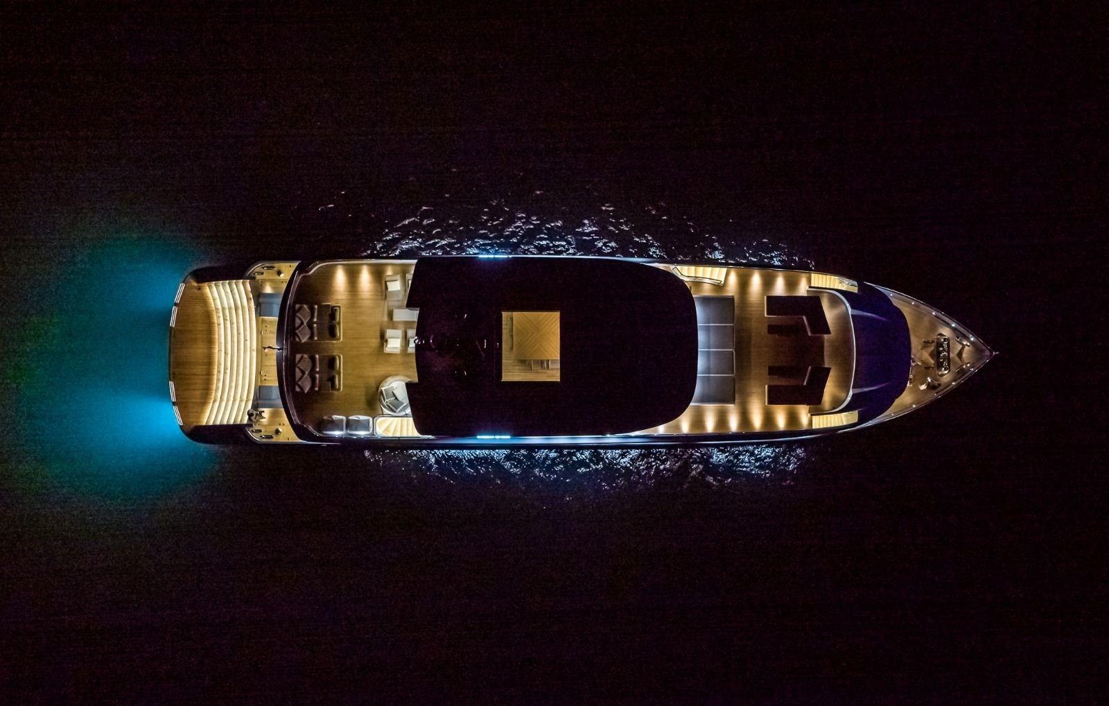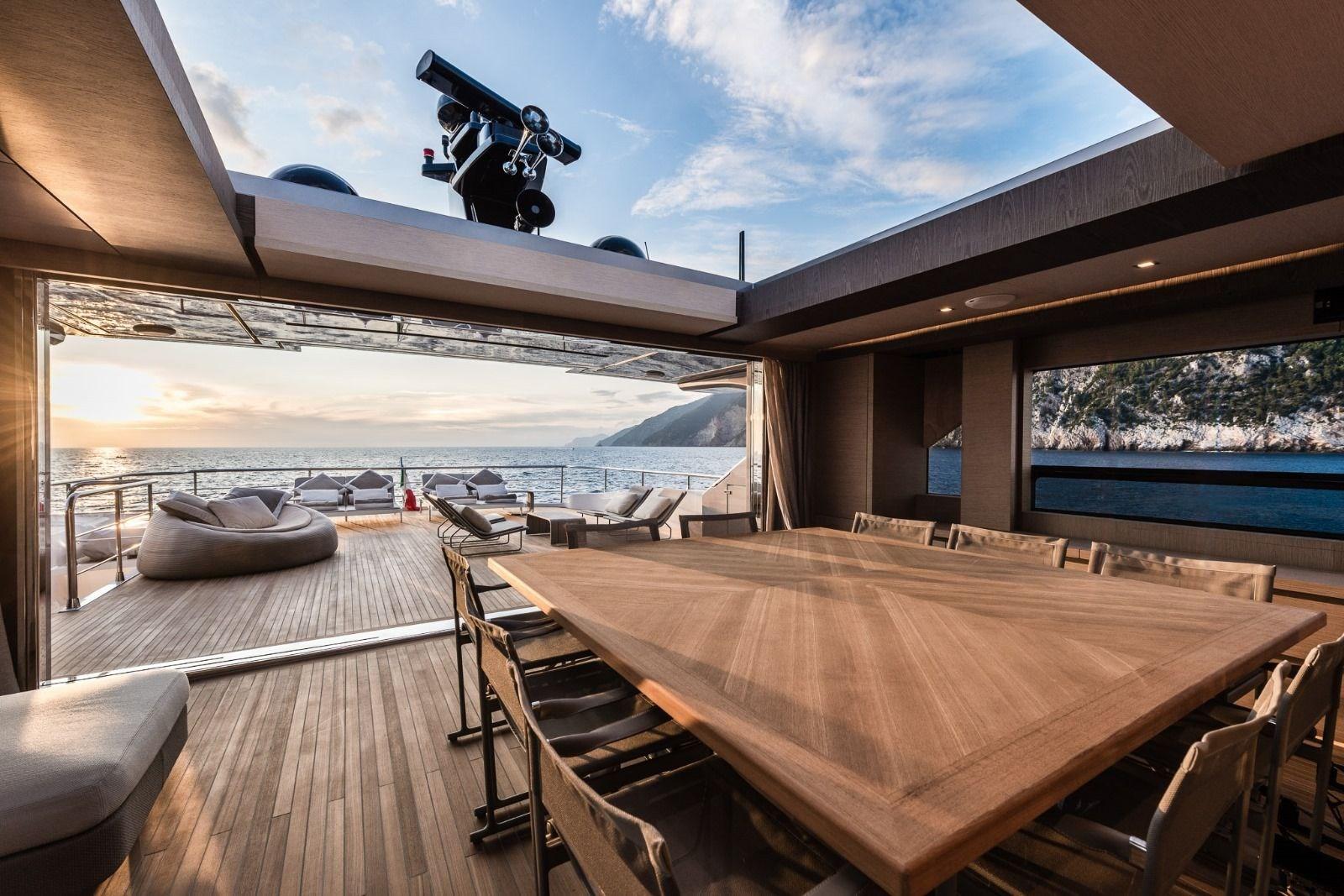 – Two aft garages: one side-type for a large tender (a William 625 can fit in); plus, and aft garage for jet-ski or a smaller
