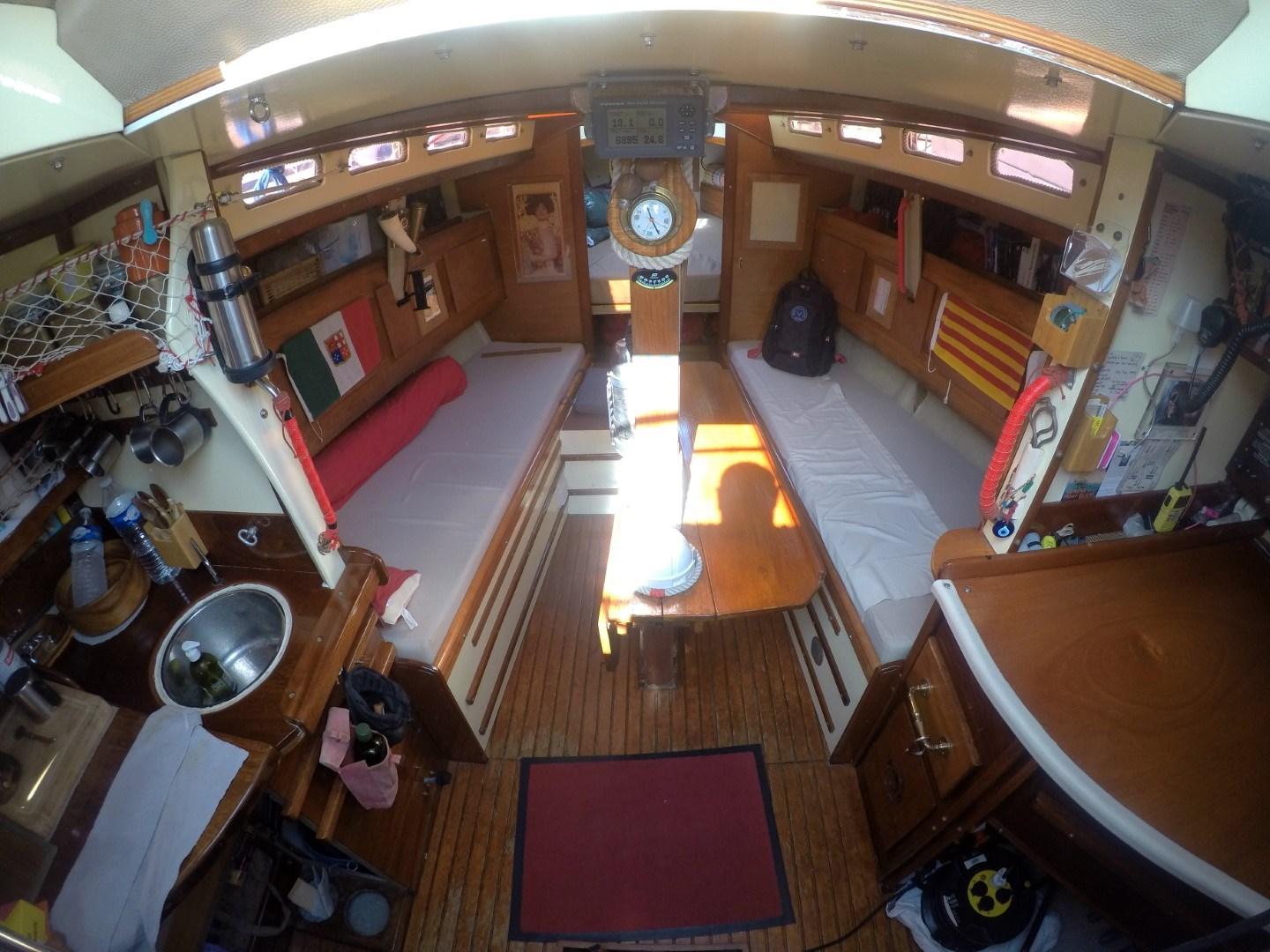Ce voilier de propriétaire (skipper/formateur voile), dispose de 3 cabines dont une Skipper, et d'une salle d'eau.