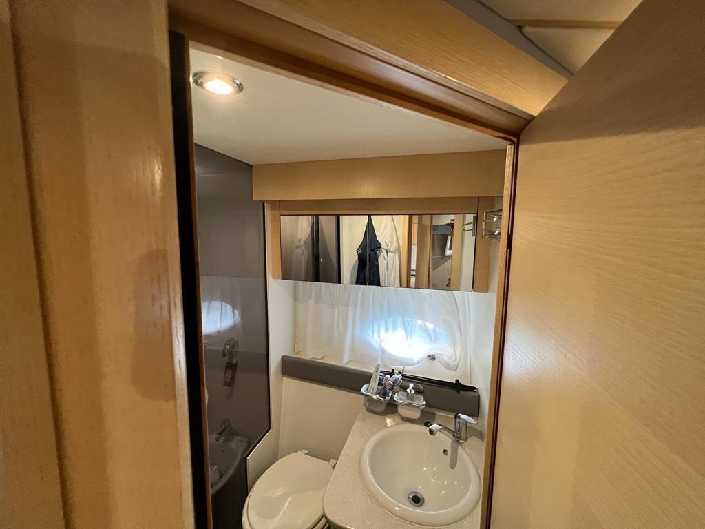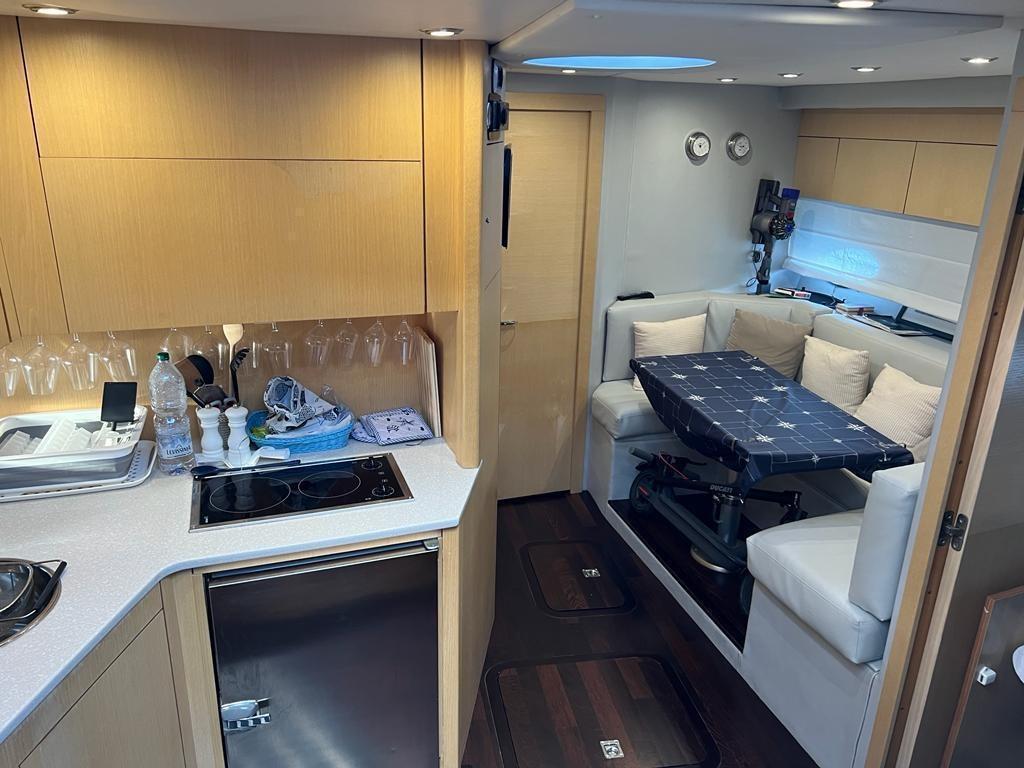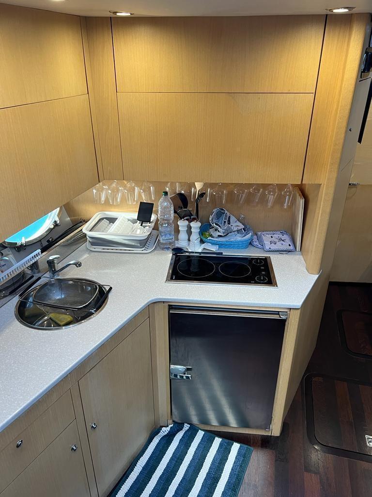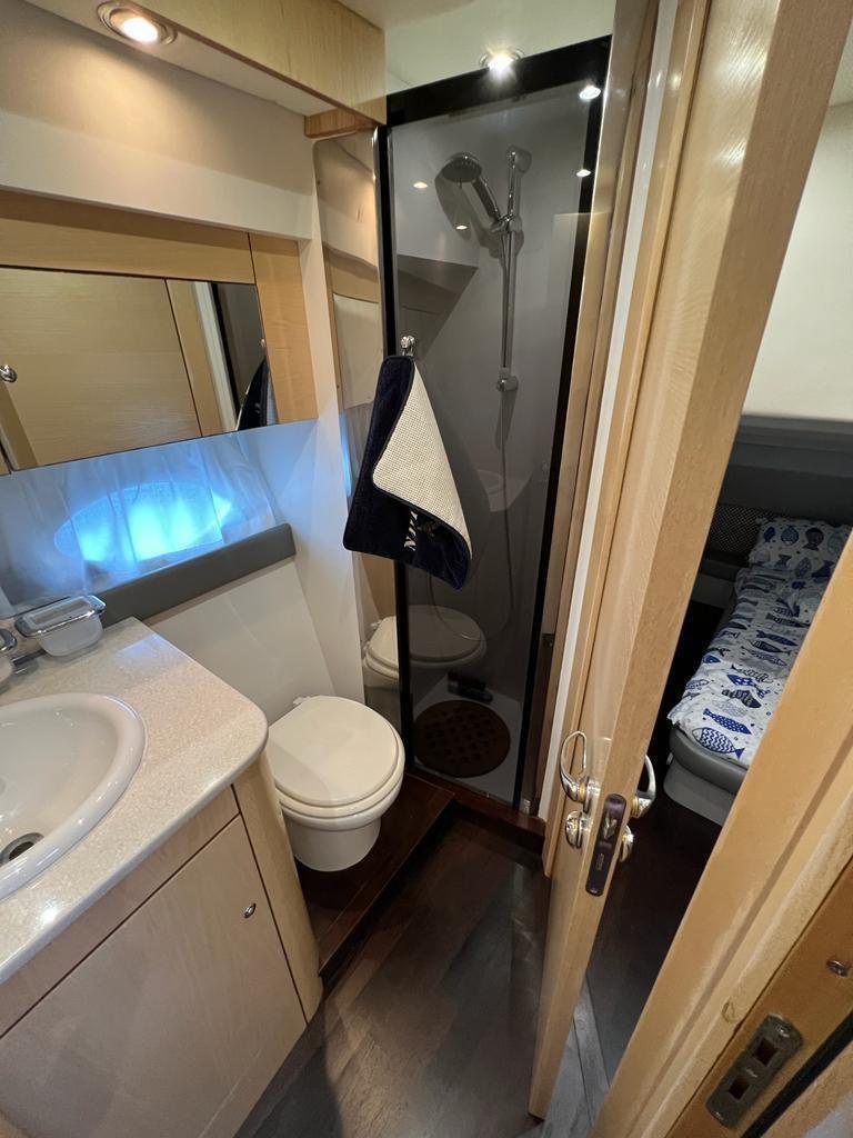 Excellent bateau bien entretenu et équipé, 3 cabines 2 salles de bain, remplacement 2021/2022 des injecteurs, révision des pompes, nettoyage des échangeurs, remplacement des turbines, soning et nettoyage des réservoirs de carburant, o9en plus de l’entretien périodique des moteurs et des stern drives. Gril dans le cockpit, Fusion stéréo avec haut-parleurs professionnels, haut-parleurs sur rollbarc, subwoofer dans le cockpit.