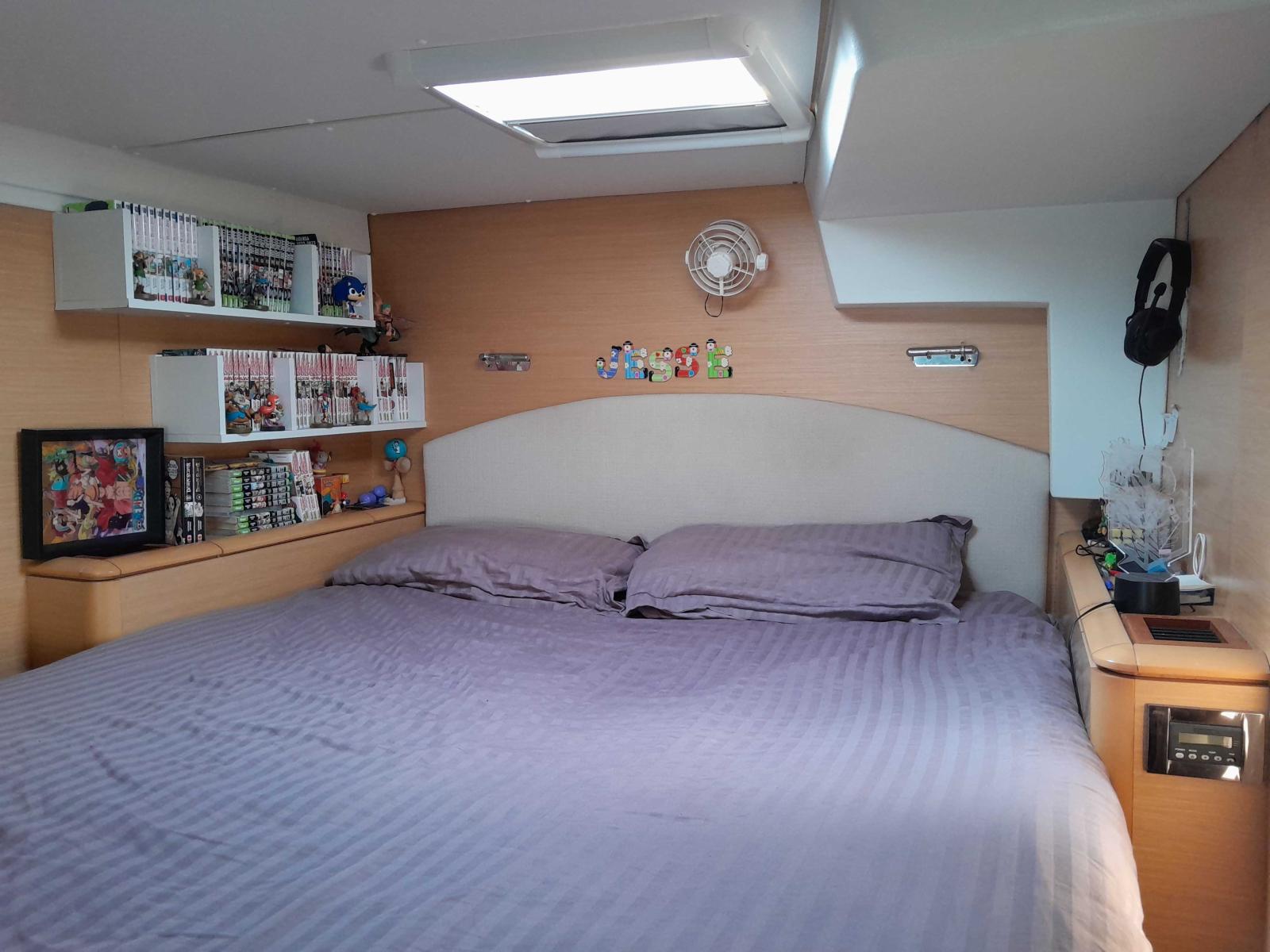 Avec ses grands espaces de vie, le Lagoon 500 offre un confort inégalé. Les cabines spacieuses et les salons lumineux permettent de profiter pleinement de la vie à bord. Une cabine a été aménagé en smart room technique.