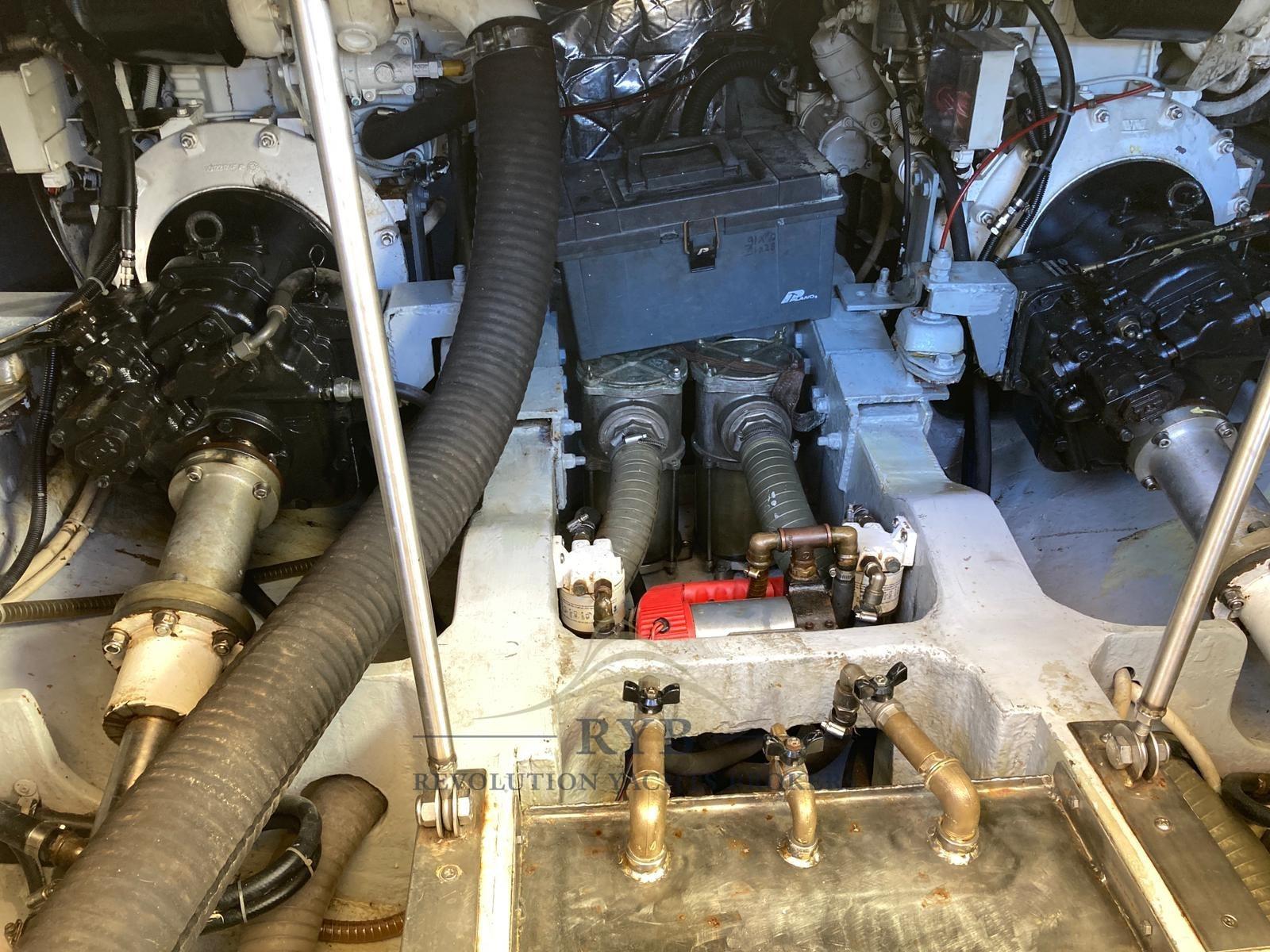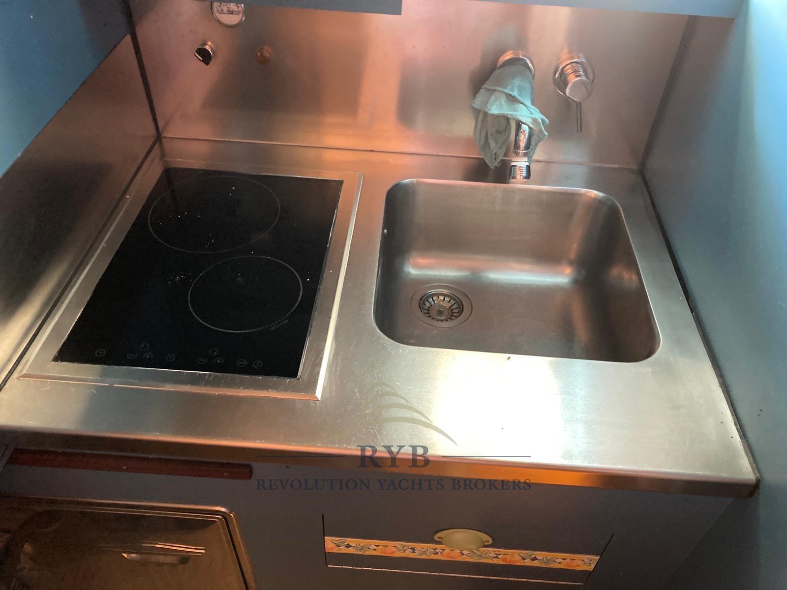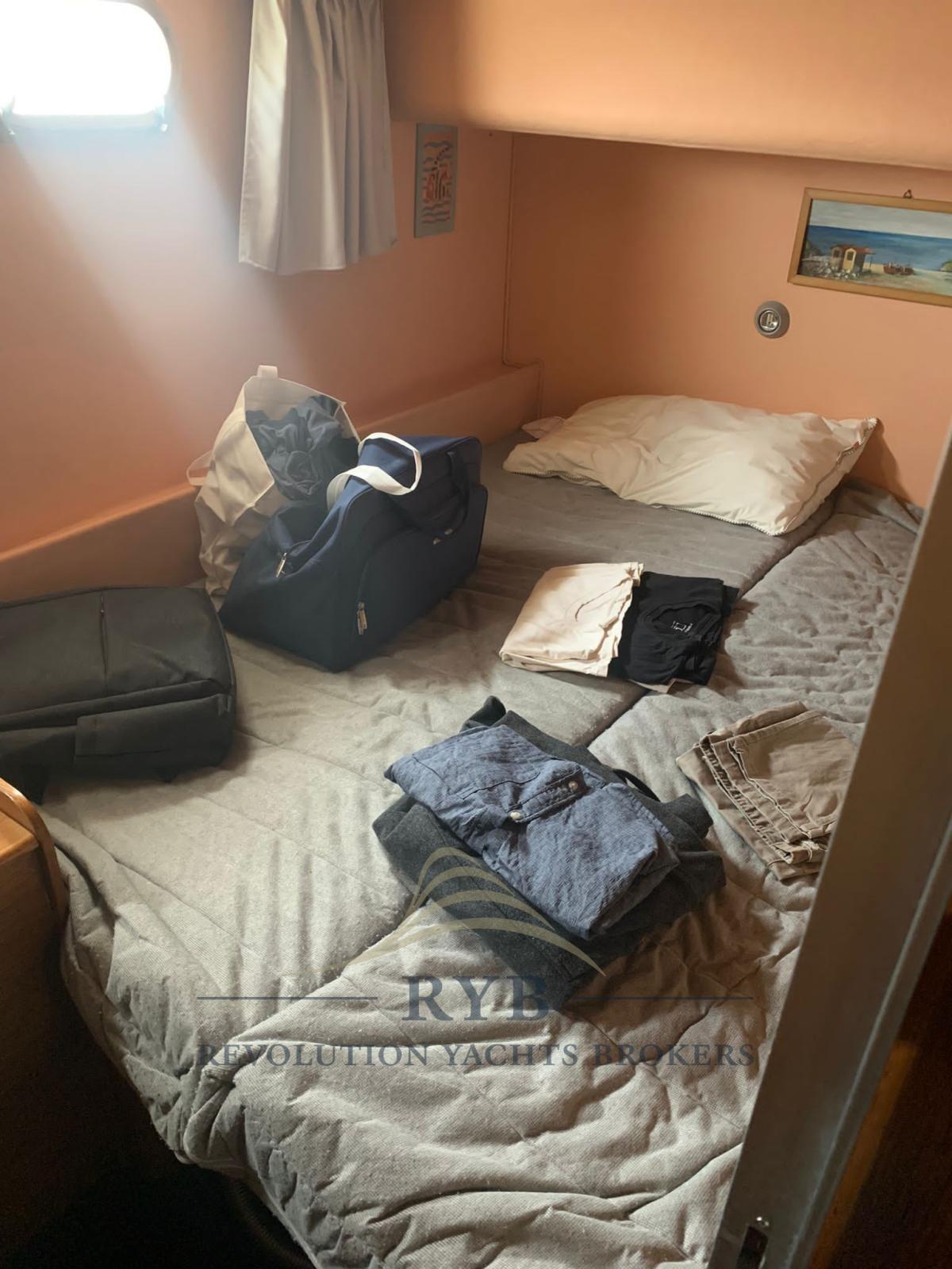 Eau sous pression, Douche de cockpit, Flaps hydrauliques (N°2), Passerelle (A SCOMPARSA), Plateforme arrière (SPECCHIO DI POPPA IDRAULICO), Pompe de cale automatique, Pompe de cale manuelle, Porte latérale, Cockpit en teck, Prise de quai, Guindeau électrique, Echelle de bain, Corne.