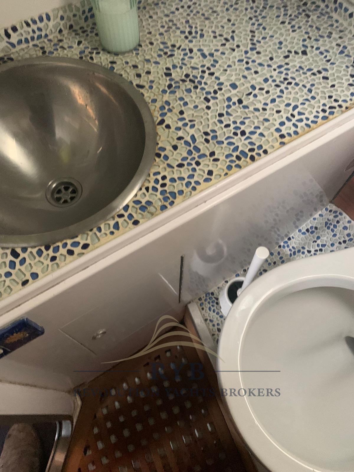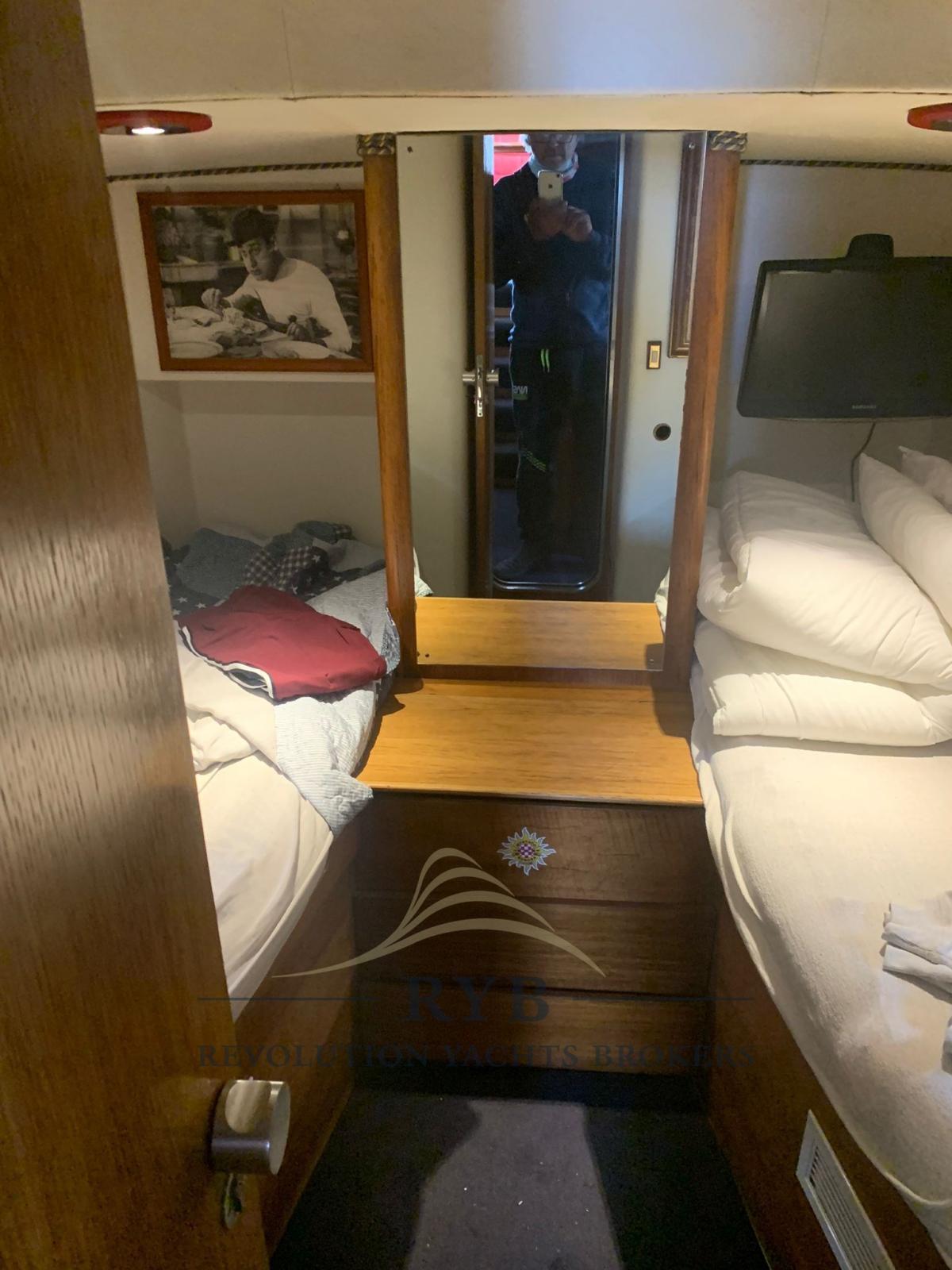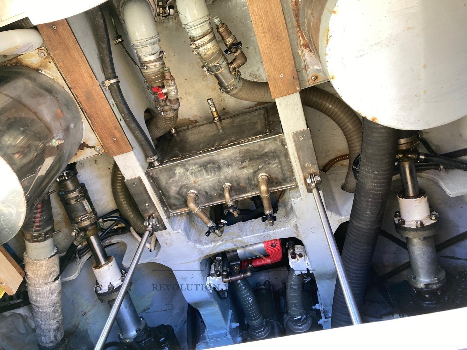 Eau sous pression, Douche de cockpit, Flaps hydrauliques (N°2), Passerelle (A SCOMPARSA), Plateforme arrière (SPECCHIO DI POPPA IDRAULICO), Pompe de cale automatique, Pompe de cale manuelle, Porte latérale, Cockpit en teck, Prise de quai, Guindeau électrique, Echelle de bain, Corne.