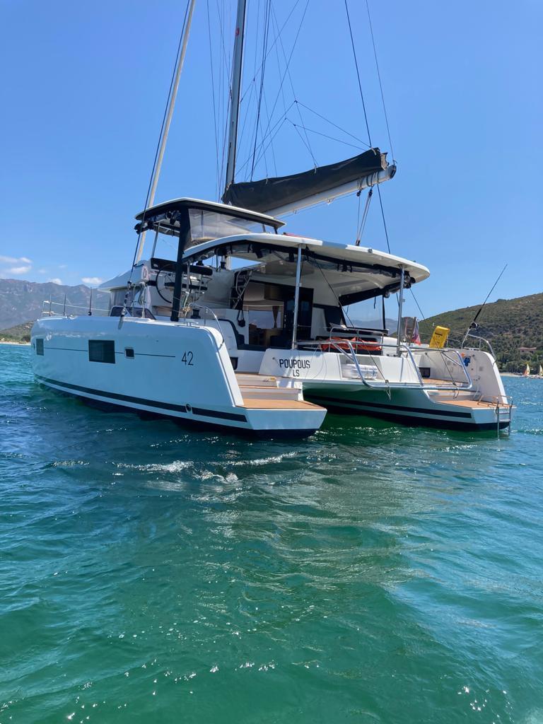 Ce Lagoon 42 est disponible à la visite, est idéale pour des moments de détente en mer en famille ou entre amis.