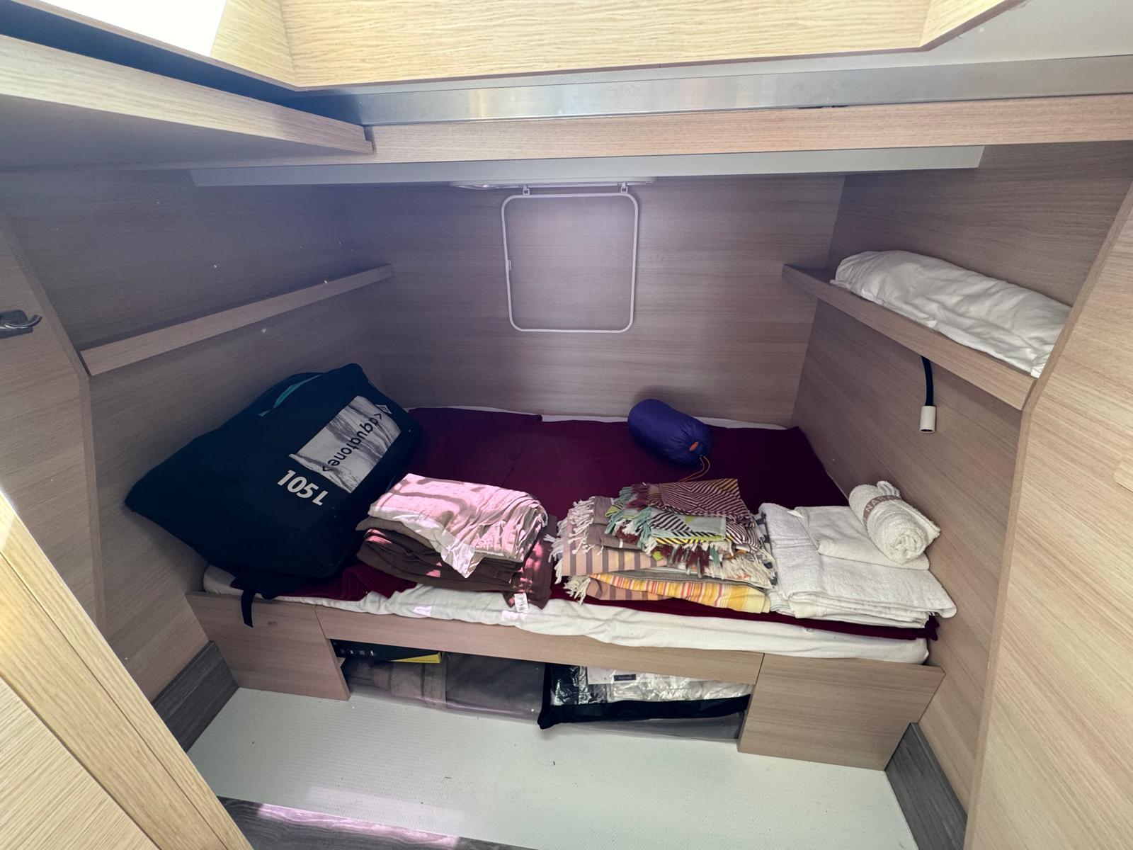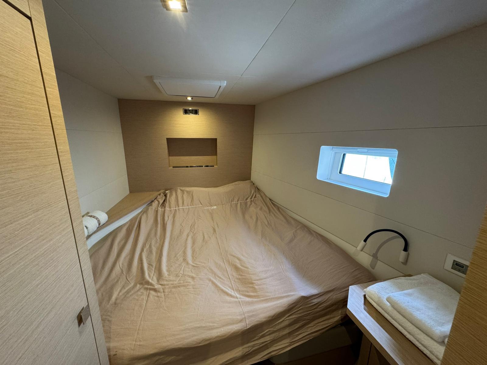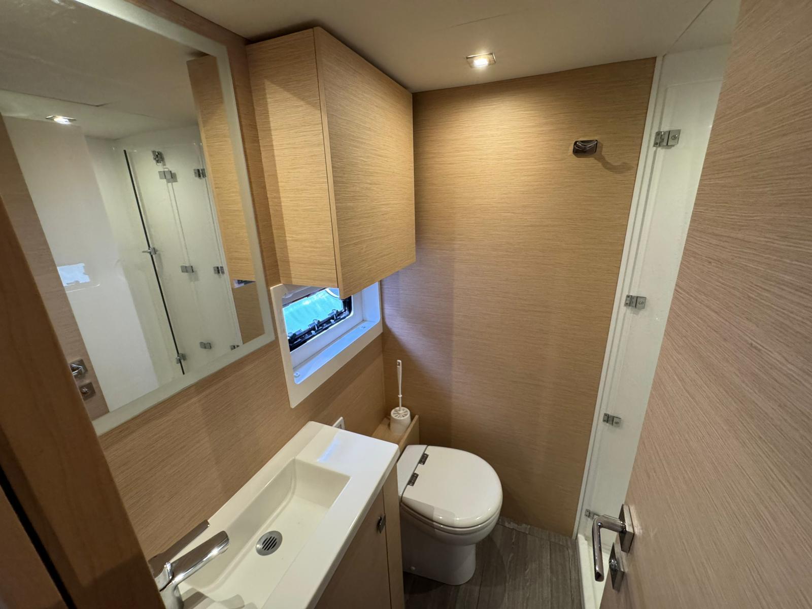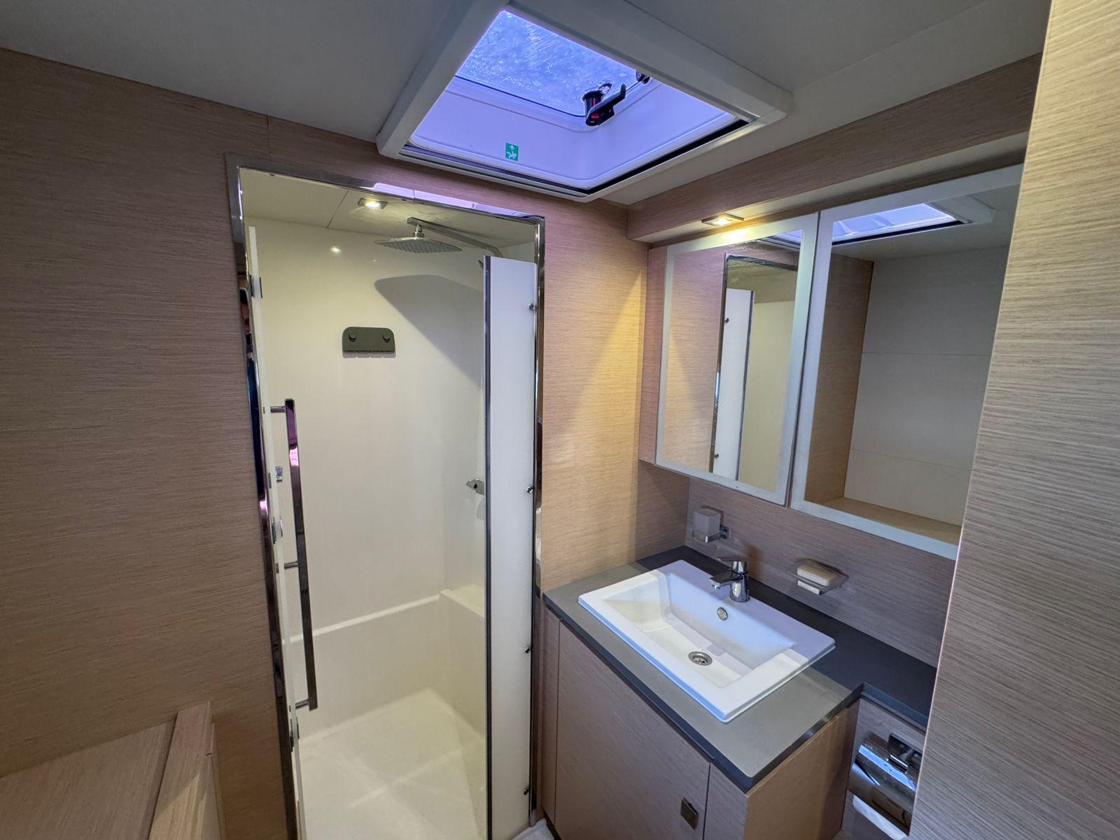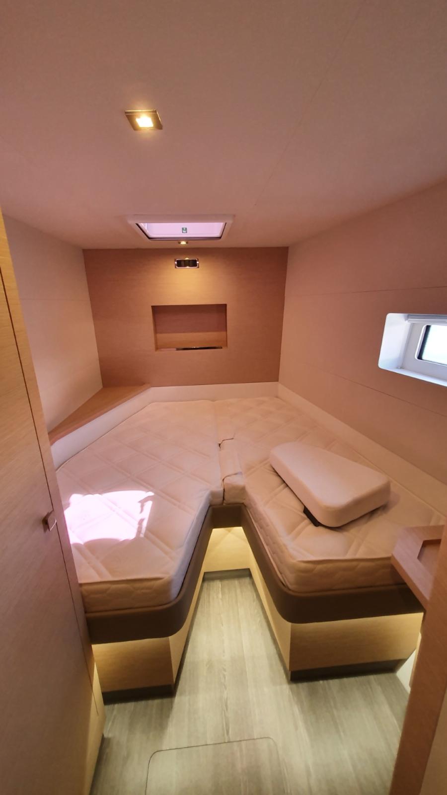 Le Fountaine Pajot MY 44 se distingue par ses espaces généreux et son design moderne. Le salon principal est lumineux et convivial, grâce à de larges baies vitrées offrant une vue panoramique. La cuisine ouverte est entièrement équipée, idéale pour préparer vos repas en mer. Les cabines, dont une suite propriétaire occupant tout le flotteur bâbord, garantissent intimité et confort.
