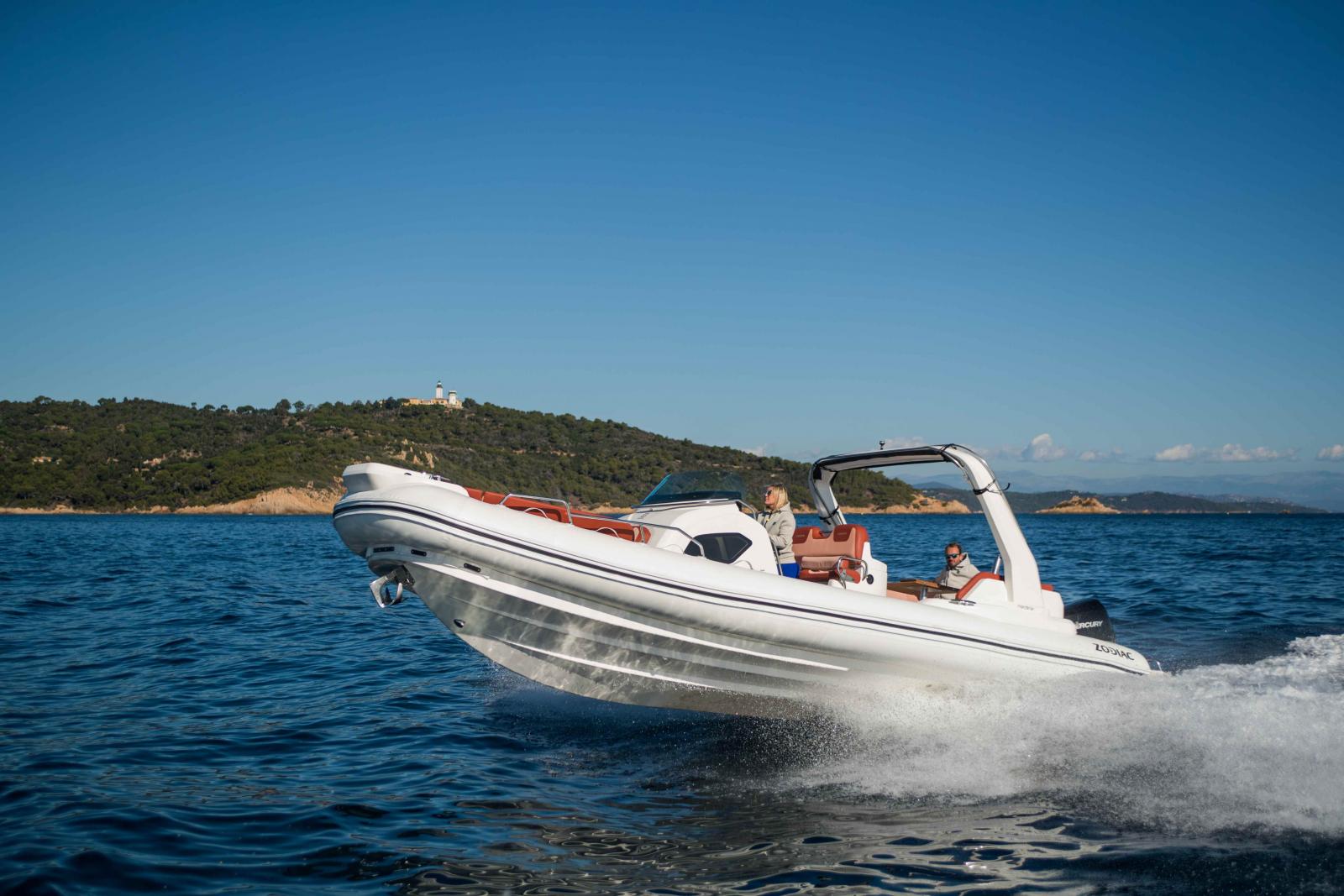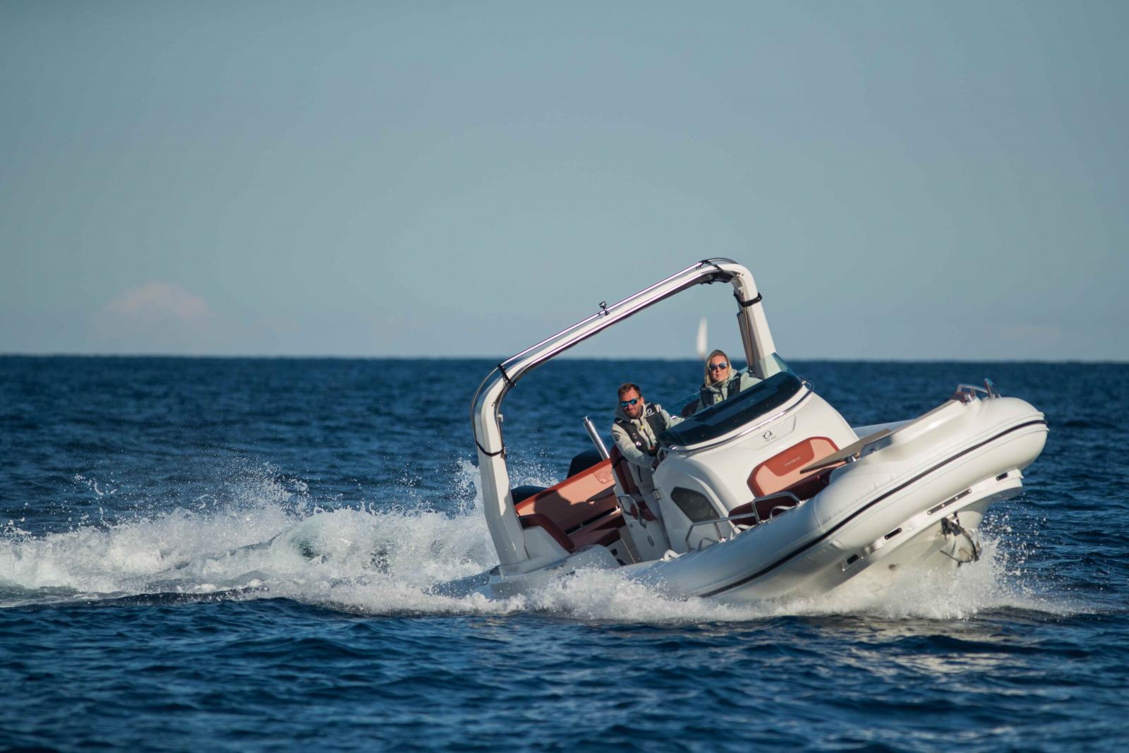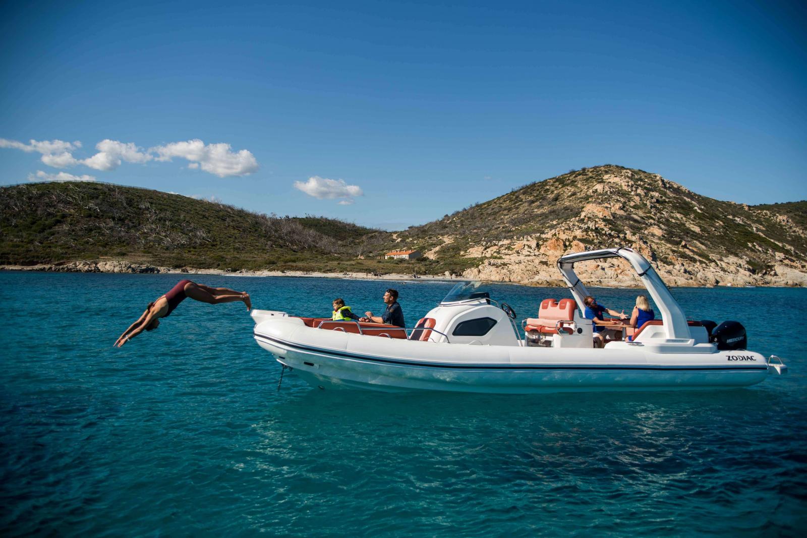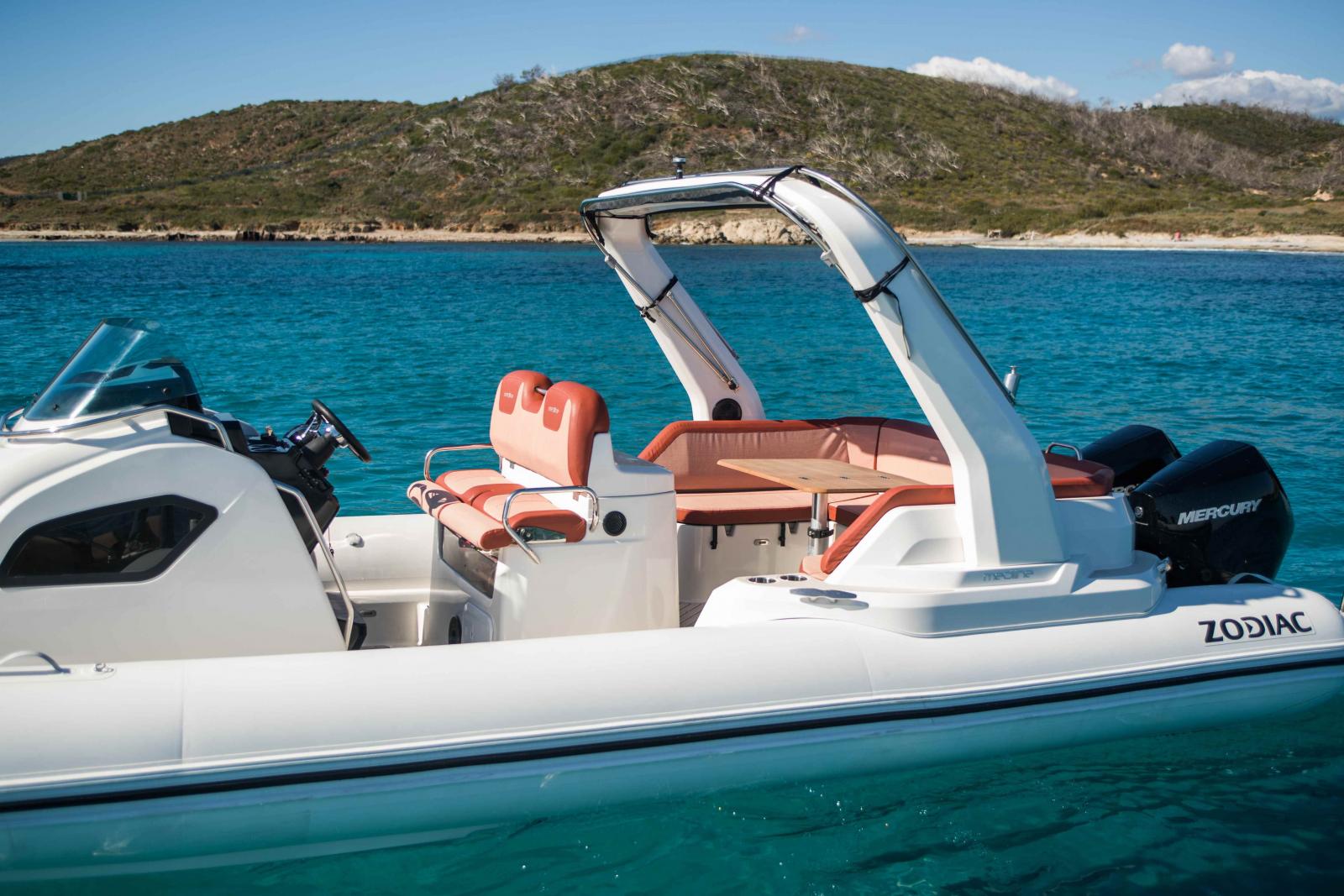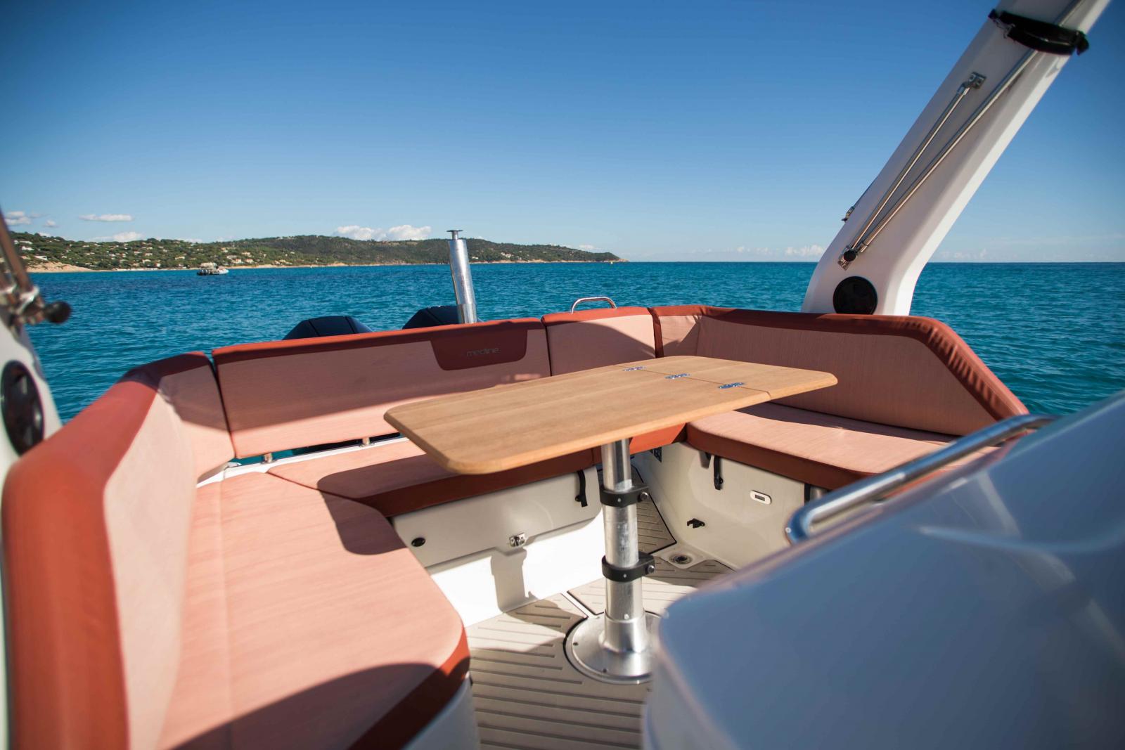 Un espace de détente infini pour des journées inoubliables… Double carré avant et arrière, transformables en bain de soleil, jusqu’à 14 places assises en équipement standard. Cuisine intégrée avec évier (plancha possible en option), console intégrant une cabine habitable avec toilettes (espace couchette en option). Bolster triple positions pouvant accueillir jusqu’à deux adultes + un enfant. Plateformes d’accès arrière à la mer et davier plongeoir à l’avant.