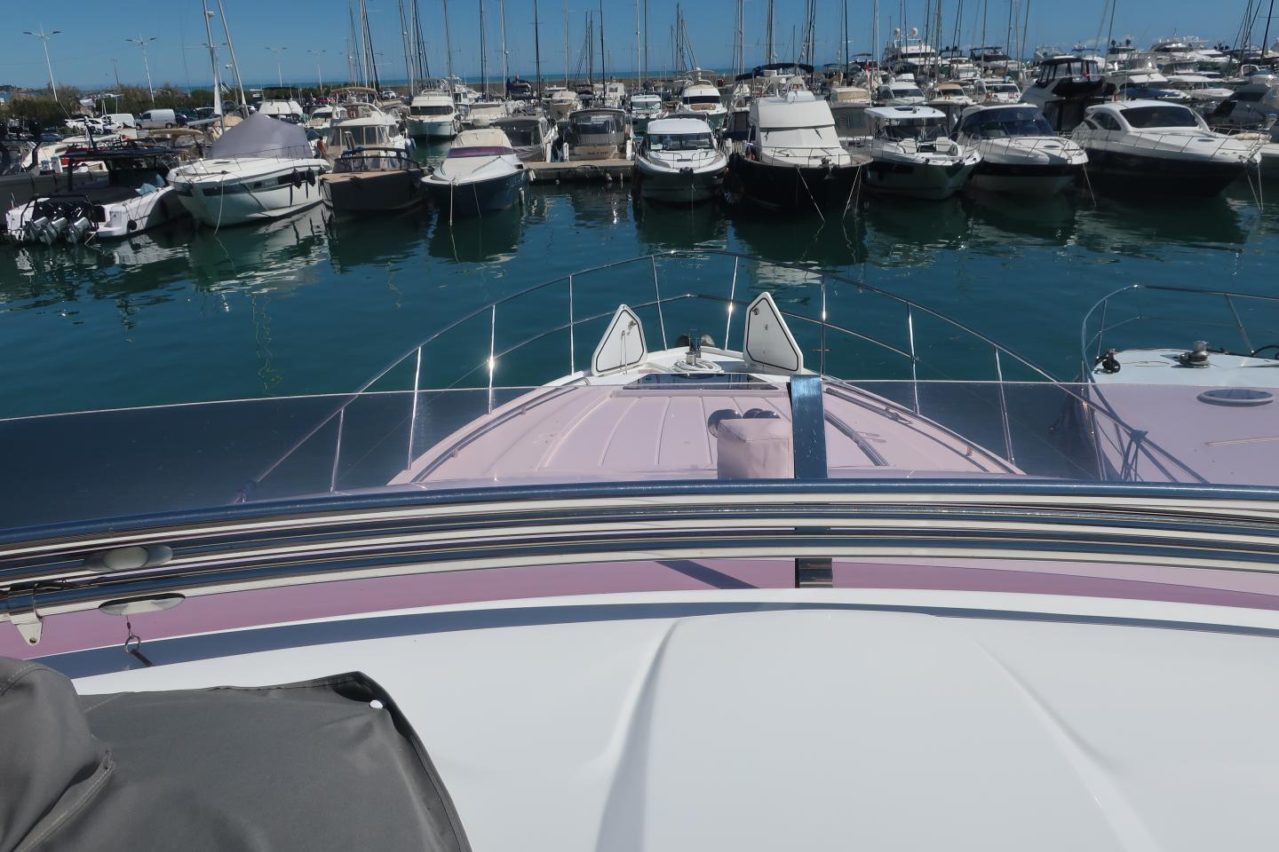 Ce Princess 56 Fly bridge, construit en 2016 par le chantier britannique Princess Yachts, est un yacht à moteur de luxe alliant élégance, performance et confort, idéal pour des croisières en Méditerranée.