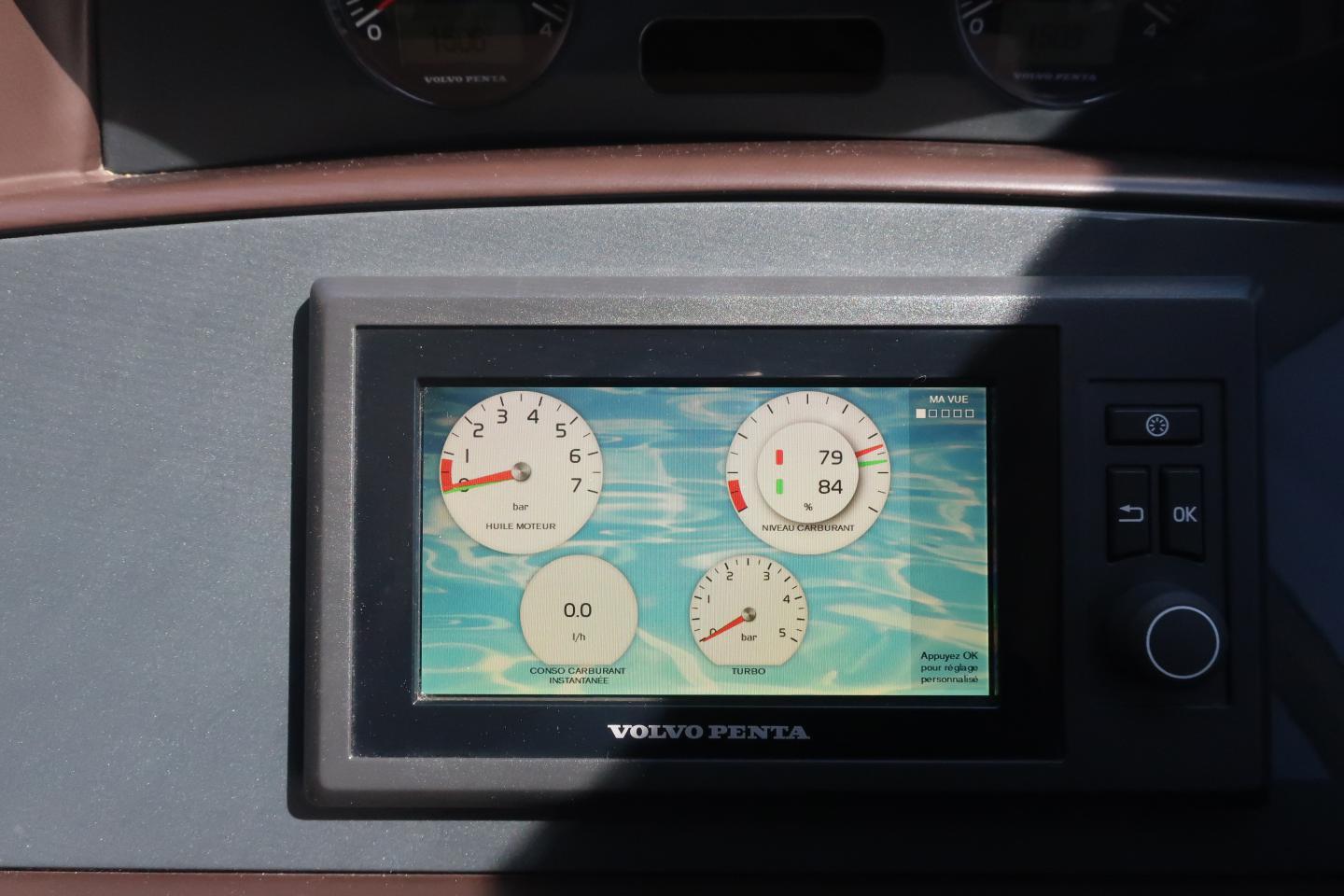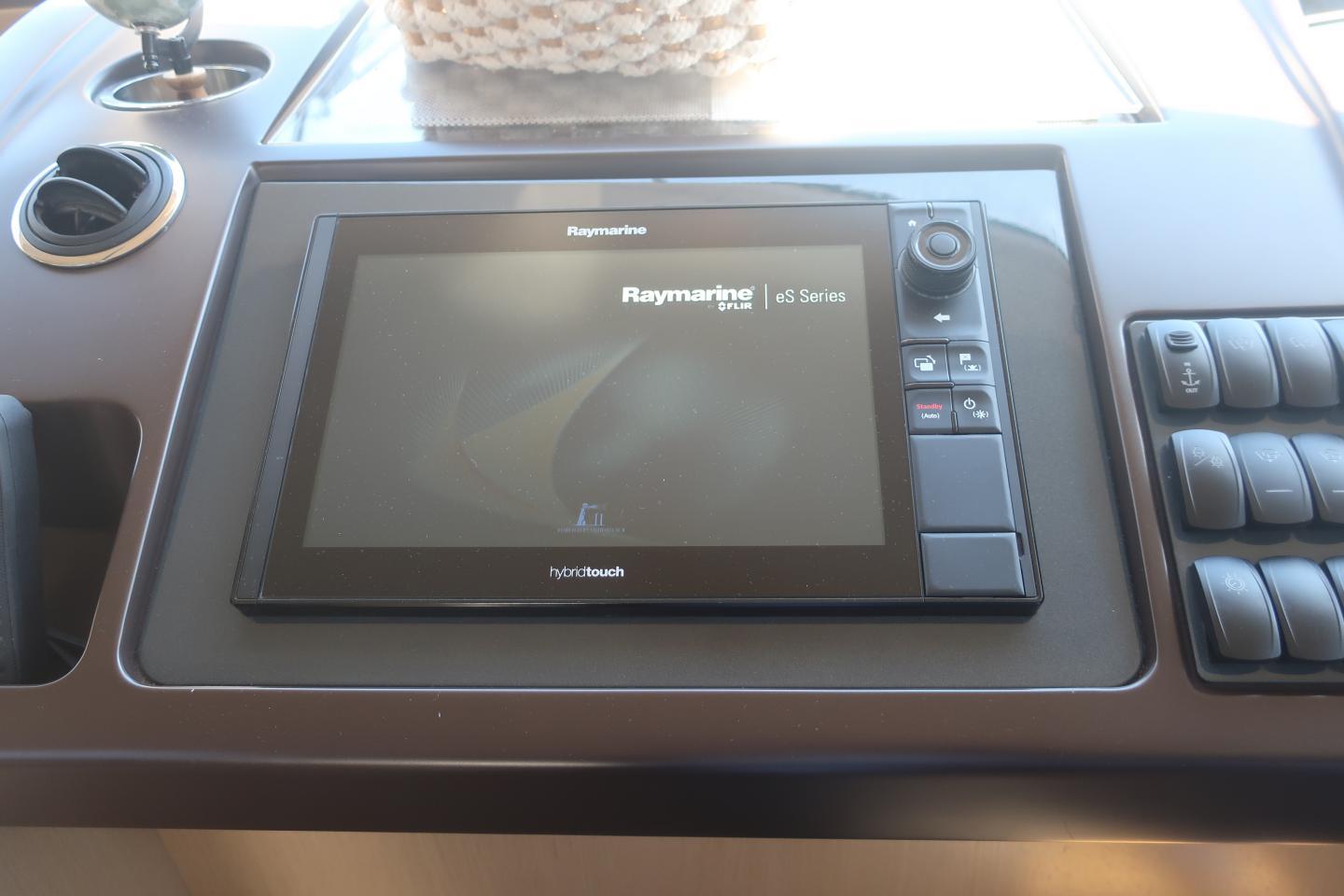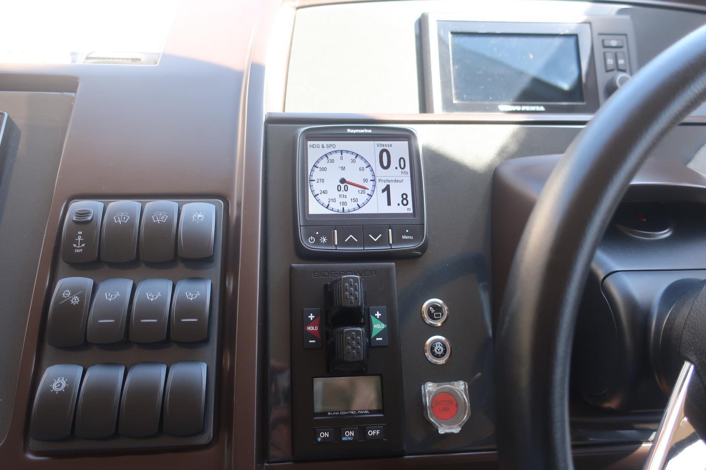 Poste de pilotage intérieur et au fly bridgeCentrale de navigation Raymarine loch, speedométre sondeur, girouette anémométre