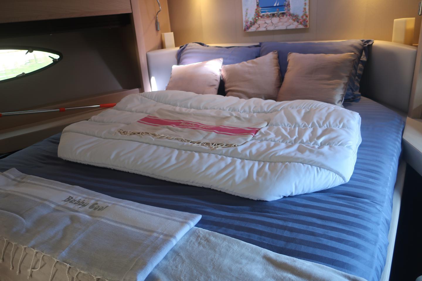 Cabine invités à l'avant avec grand lit double, et meubles de rangement