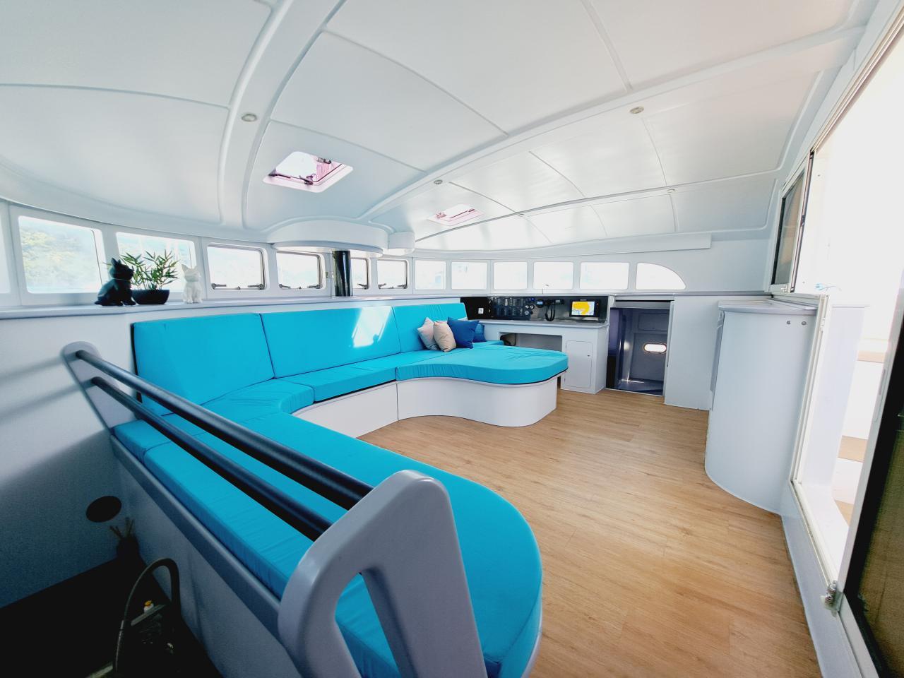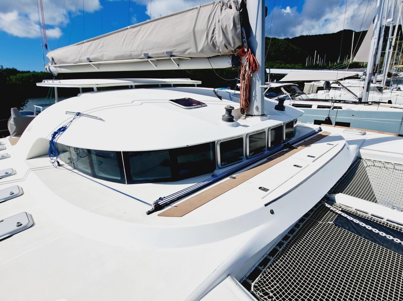 Ce Lagoon 570 est un catamaran haut de gamme construit en 2004 par le chantier français CNB Lagoon (groupe Bénéteau), reconnu pour ses catamarans de croisière performants, confortables et fiables. Lancé au début des années 2000, le 570 incarne une génération de multicoques pensés pour la grande croisière ou la navigation hauturière avec équipage. Ancien catamaran de charter entièrement refité par un chantier professionnel fin des travaux en 2023, pavillon Français hors taxes, visible en Martinique.