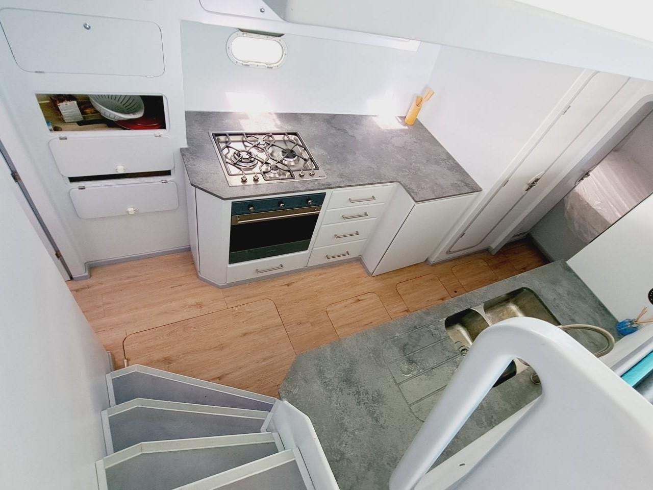 Excellente habitabilité et finitions marines de qualité.