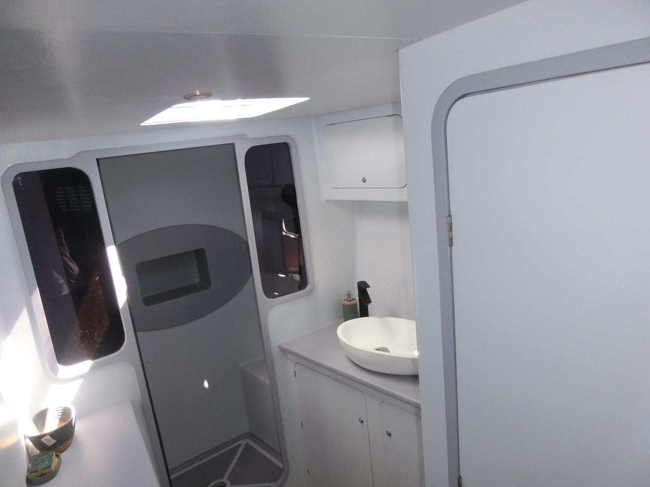Salle d’eau avec douche, lavabo et WC électrique Vêtus et holding tank