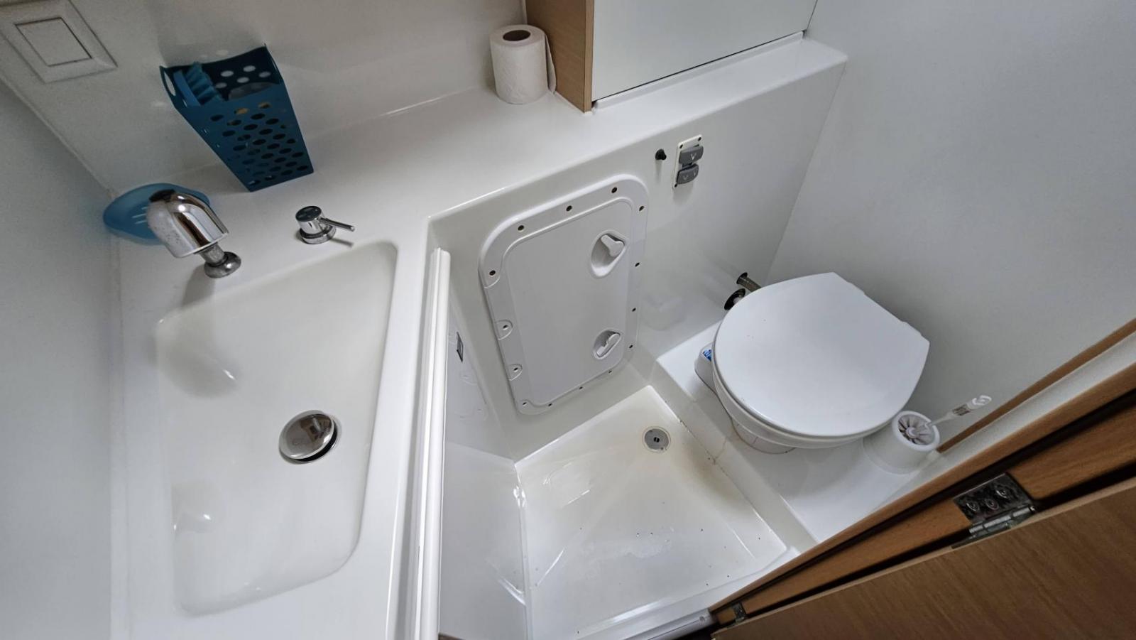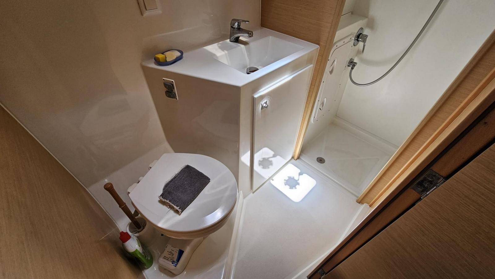Deux salle d’eau avec WC électriques Jabsco et une cabine de douche séparée