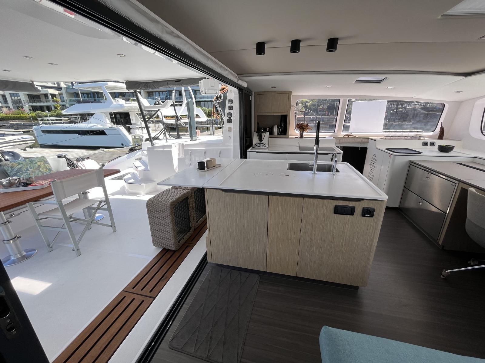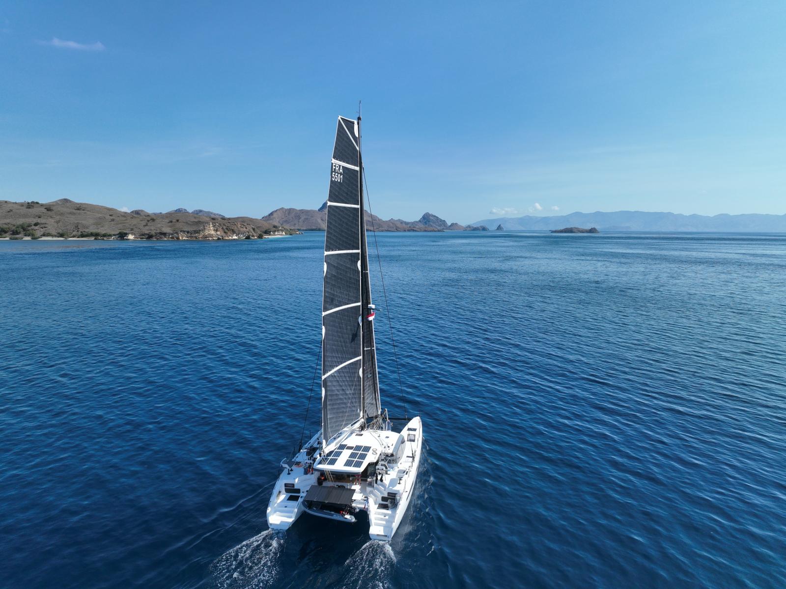 Premier né de la gamme, ce catamaran revient d’un tour du monde. Deuxième Outremer de ses propriétaires, il a été conçu pour conjuguer performance, autonomie et confort hauturier.