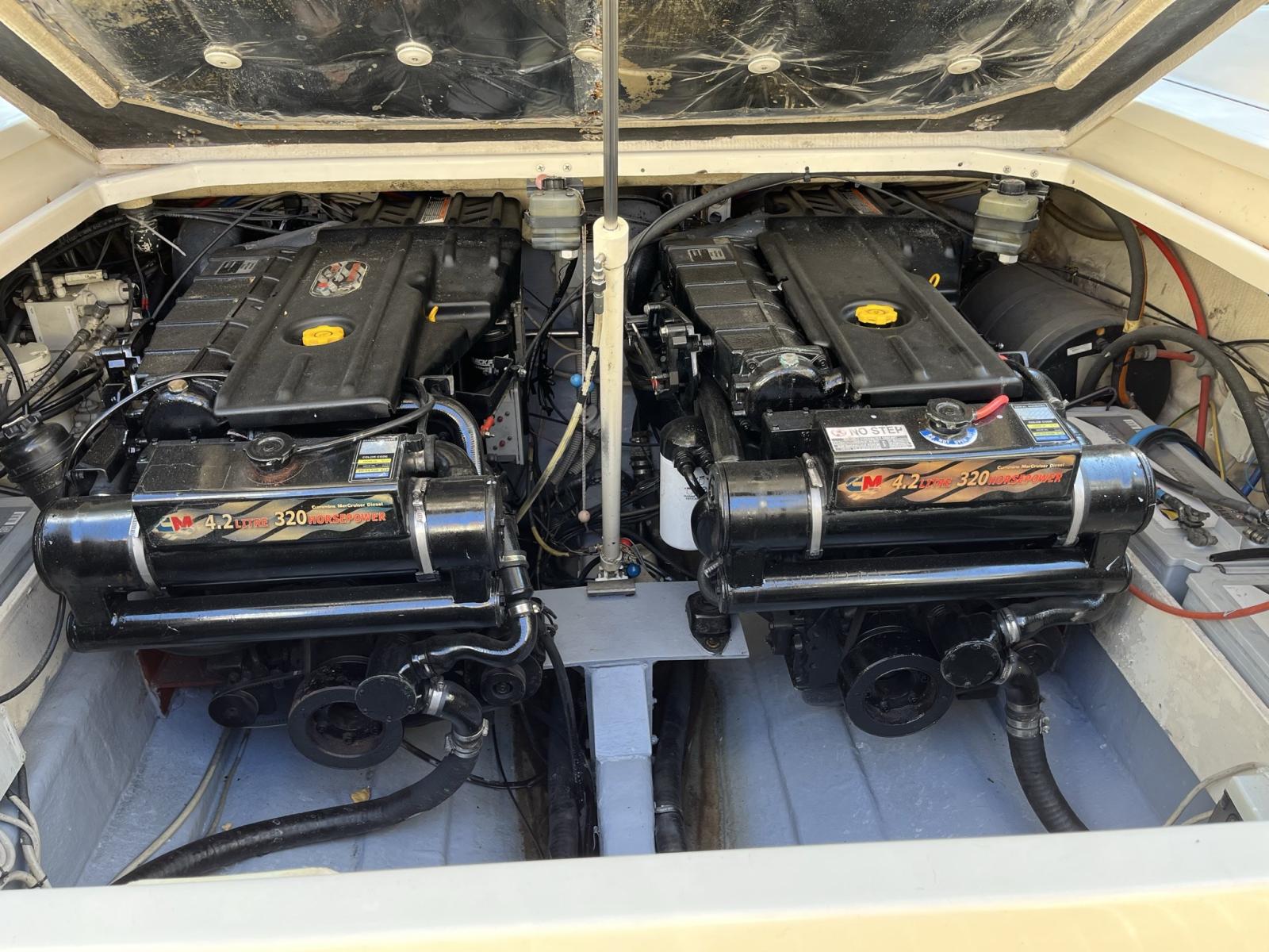 Iguana 36 de 2012 avec deux Mercruiser 320 EFB diesel avec seulement 330 heures de moto. Très faible consommation, vitesse maximale 42 croisière 35. parfait prêt pour la navigation.