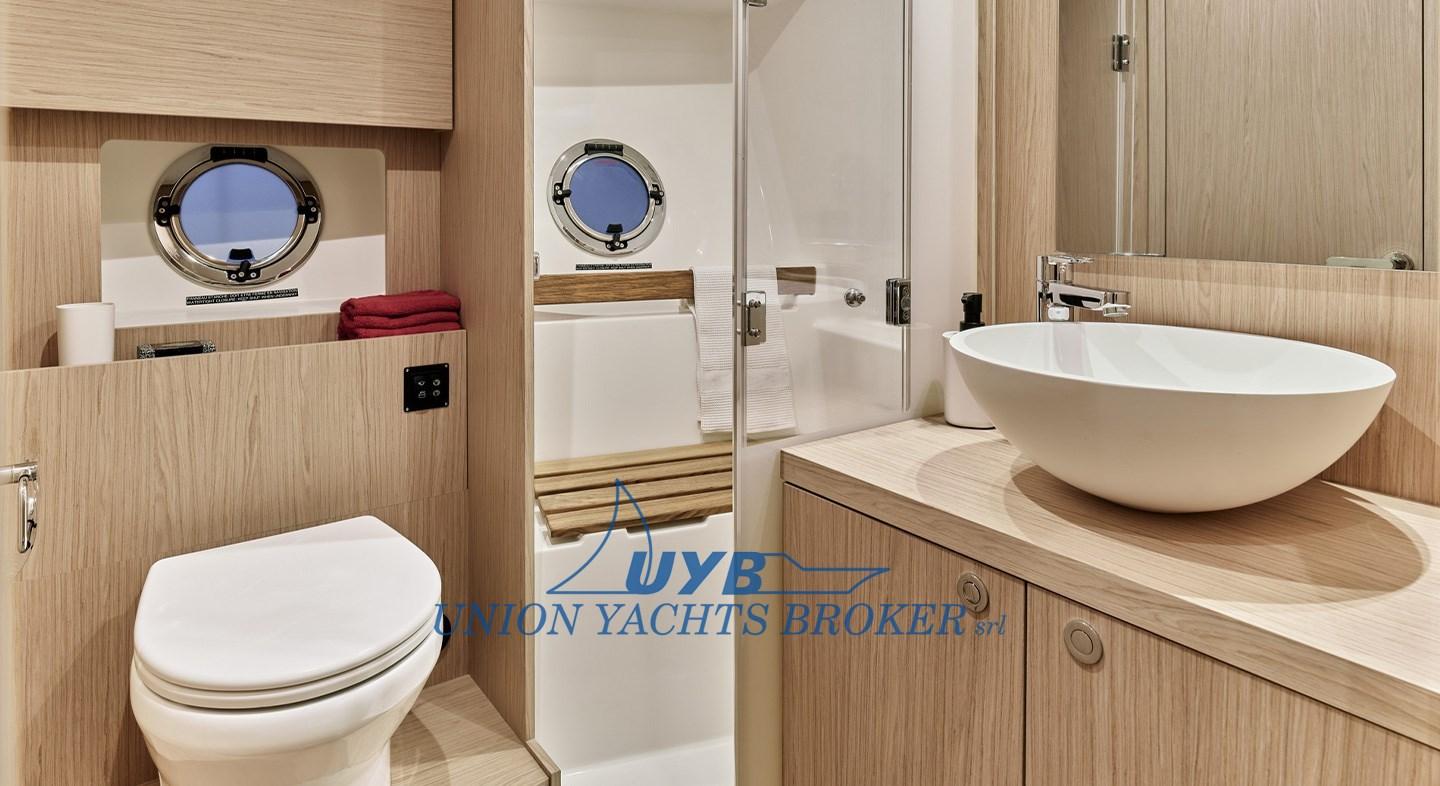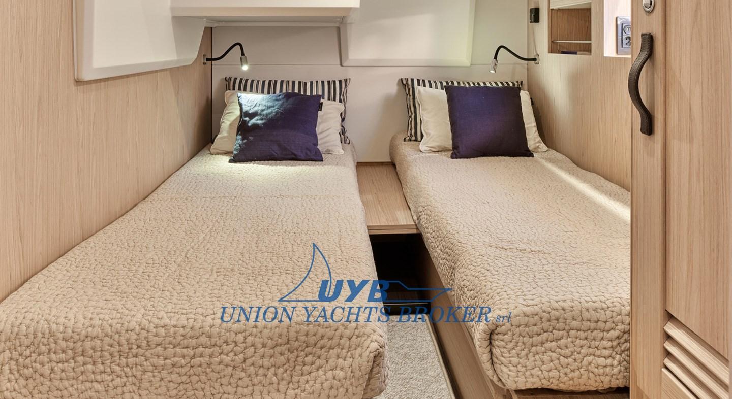 Intérieurs avec des espaces importants, cabine du propriétaire à l’avant avec salle de bain et douche, cabine d’invités avec salle de bain et douche et troisième cabine double à l’étage. Salon avec canapé pouvant être converti en lit double. Cuisine confortable en forme de « L » avec micro-ondes, réfrigérateur-congélateur, plaque vitrocéramique, lave-vaisselle.