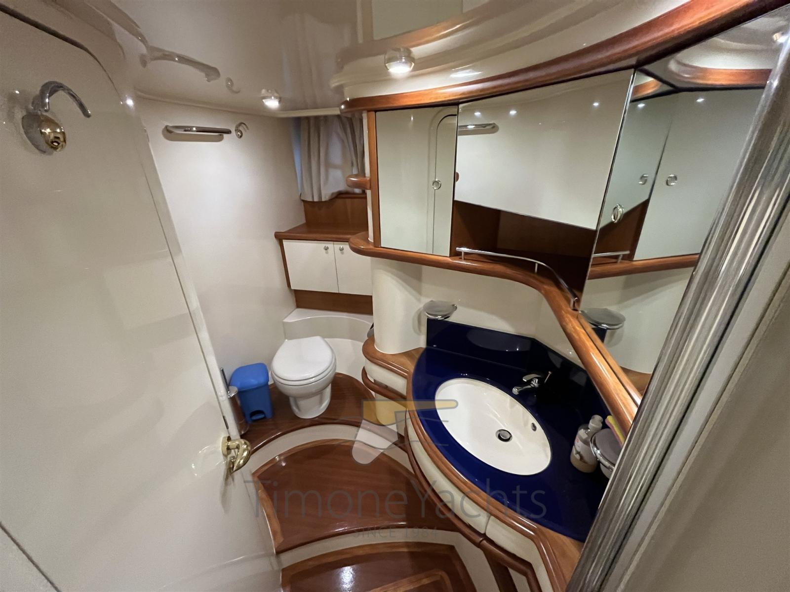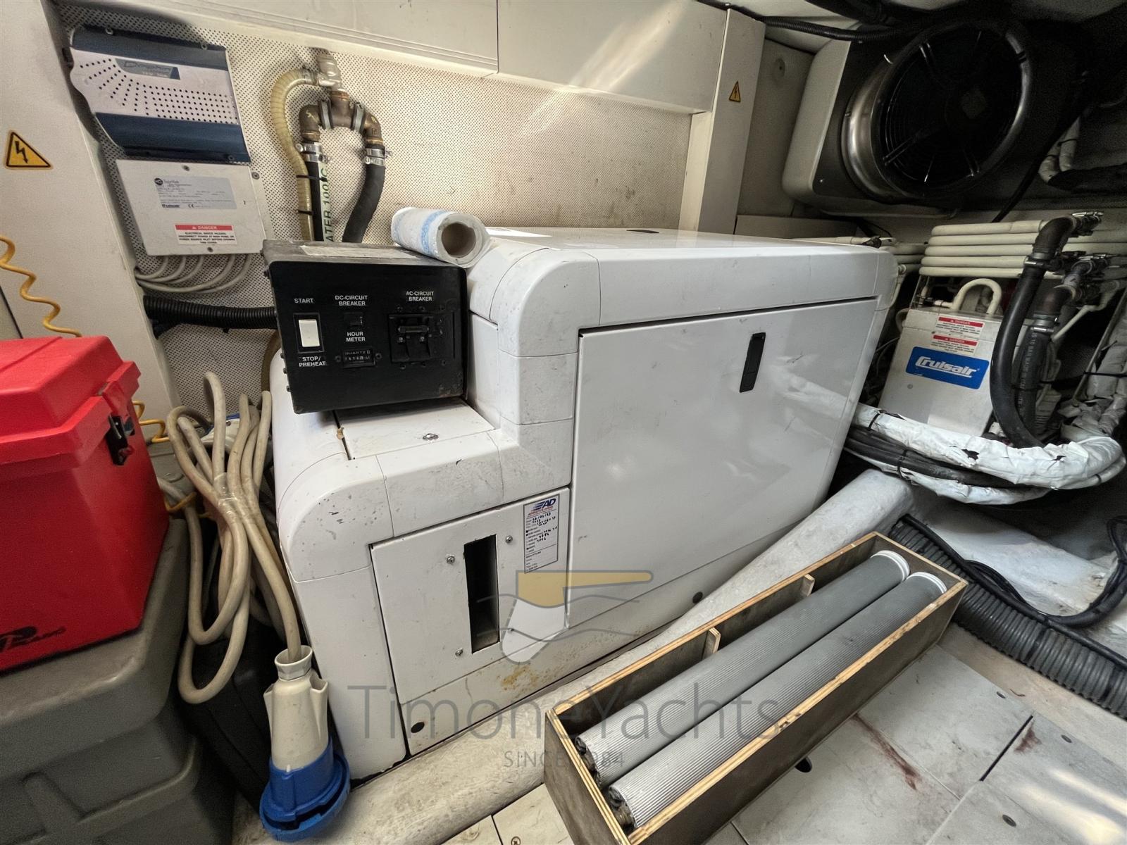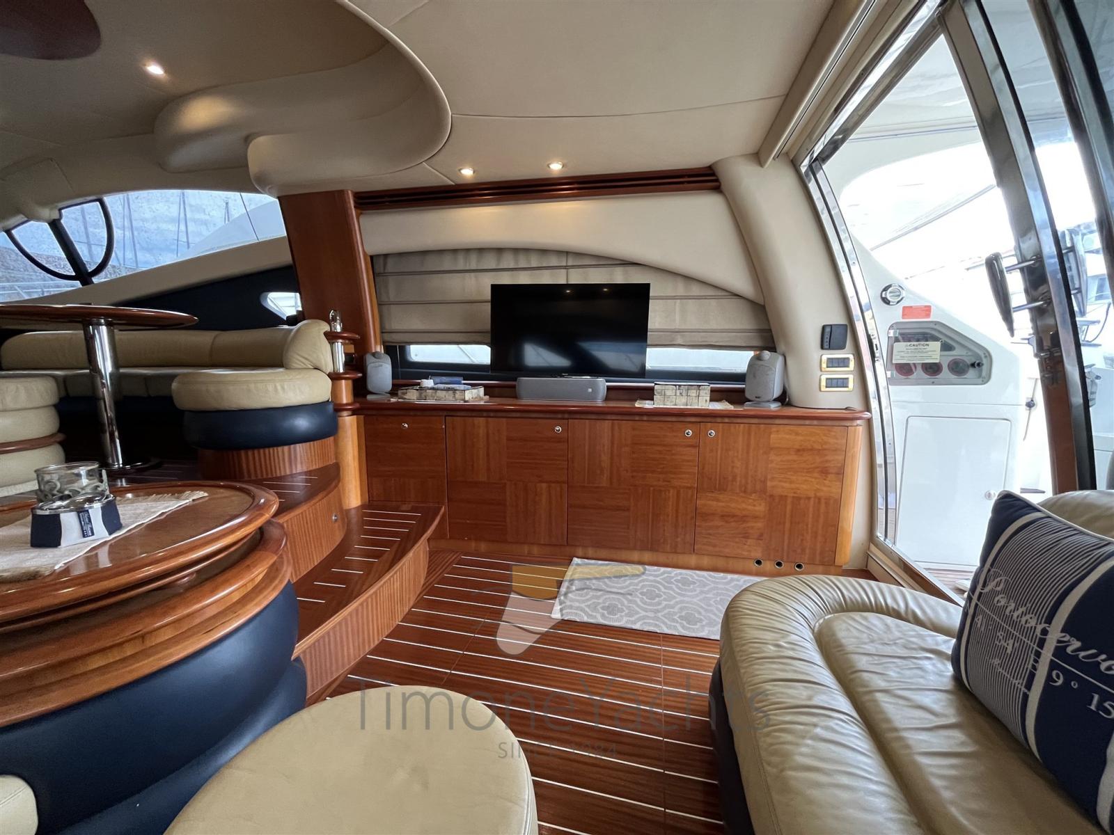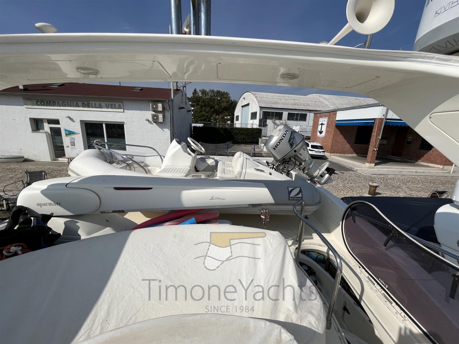 Alarme moteur, Alarme de pompe de cale, Eau sous pression, Douche de cockpit, Double barre à roue, Phare de poursuite, Flaps hydrauliques, Extincteur(s) fixe(s), Indicateurs de flaps, Lavage de chaine, Éclairage de courtoisie, Passerelle (in teak), Plateforme arrière (in teak), Pompe de cale automatique, Pompe de cale manuelle, Cockpit en teck, Prise de quai, Onduleur, Rollbar, Guindeau électrique, Echelle de bain, table de cockpit, Annexe (Con fuori bordo), Filières avec sortie latèrale, Winch électrique arrière, Winch électrique avant.