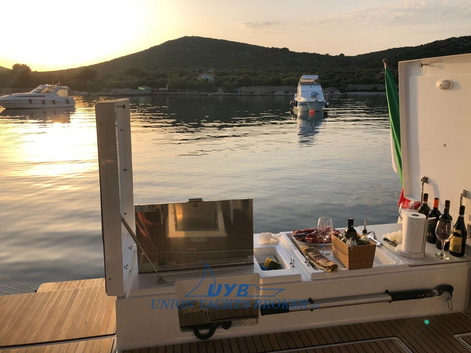 Douche de cockpit, Plateforme arrière (elettrica), Porte latérale, Cockpit en teck, Prise de quai, Guindeau électrique, Chaise support HB, Winch (T65), 3 Winch électrique (T50 a sx + T55 per genoa).
