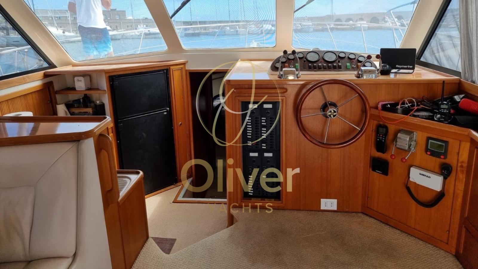 À l’intérieur se trouve le coin cuisine (cuisine), entièrement équipé : cuisinière, four, évier en acier, réfrigérateur et de nombreux compartiments de rangement. Dans cette version, il y a aussi un poste de pilotage interne, parfait pour la navigation par temps défavorable.