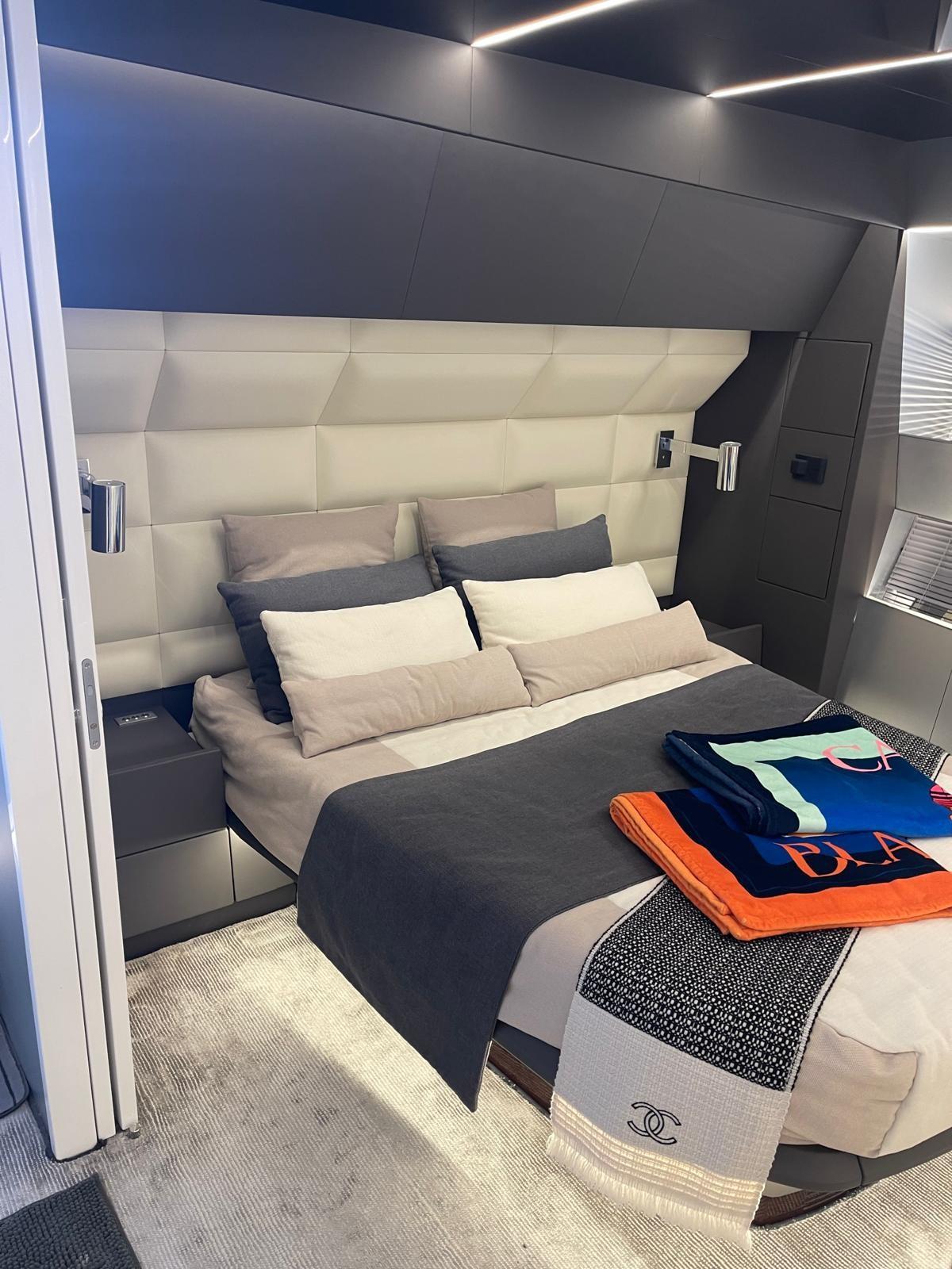 Alarme gaz, 2 Alarme moteur, Alarme de pompe de cale, Alternateur, Ouverture du compartiment moteur électrique, Auto Dynamic Trim Interceptor, Eau sous pression, Passavant en teck, Douche de cockpit, Phares fixes arrière, Flaps électriques, Garage à annexe, Bossoirs pour annexe, Hard top, Extincteur(s) fixe(s), Lavage de chaine, Lavabo dans le cockpit, Éclairage de courtoisie, Spots sous-marins, Panneau solaire, Passerelle, Plateforme arrière, 5 Pompe de cale automatique, Pont en teck, Porte latérale, Cockpit en teck, Prise de quai, Connexion eau sous pression à quai, Onduleur, Guindeau électrique, Echelle de bain, Système de filtration des eaux usées, Stabilisateurs, table de cockpit, Annexe, Corne, Winch électrique avant.