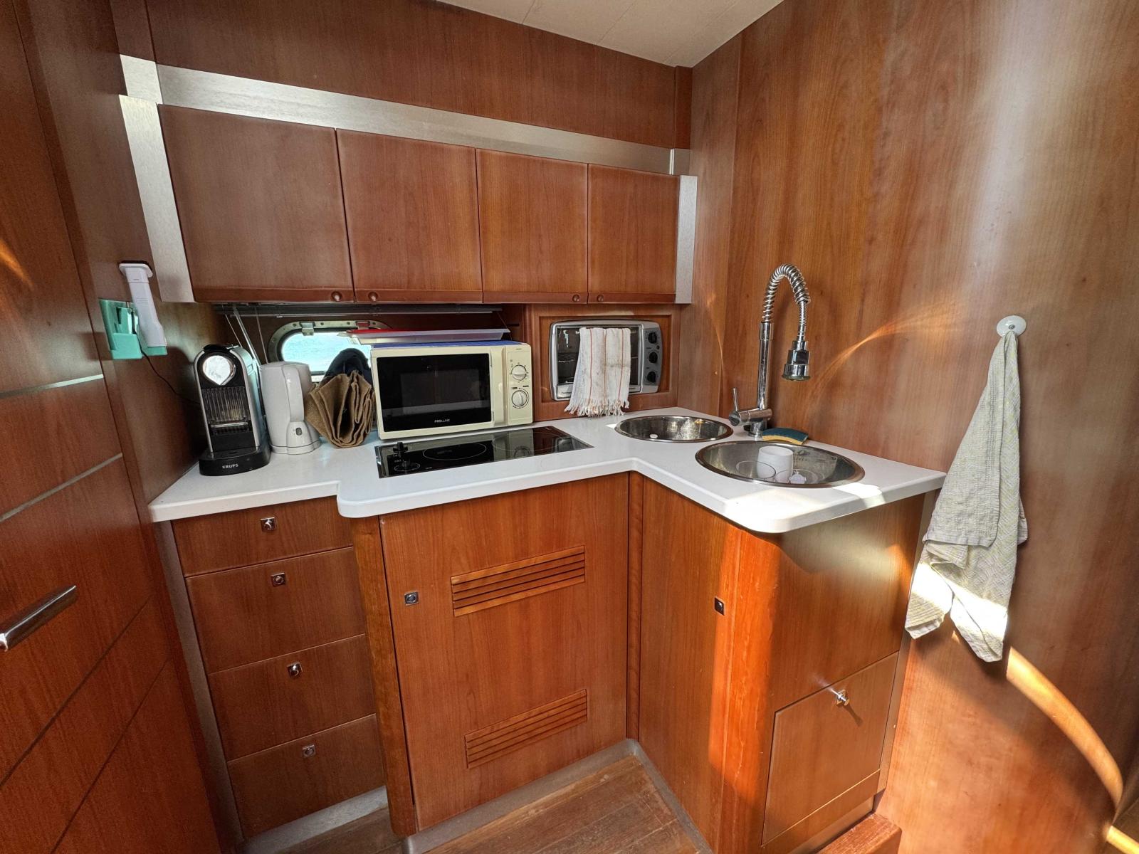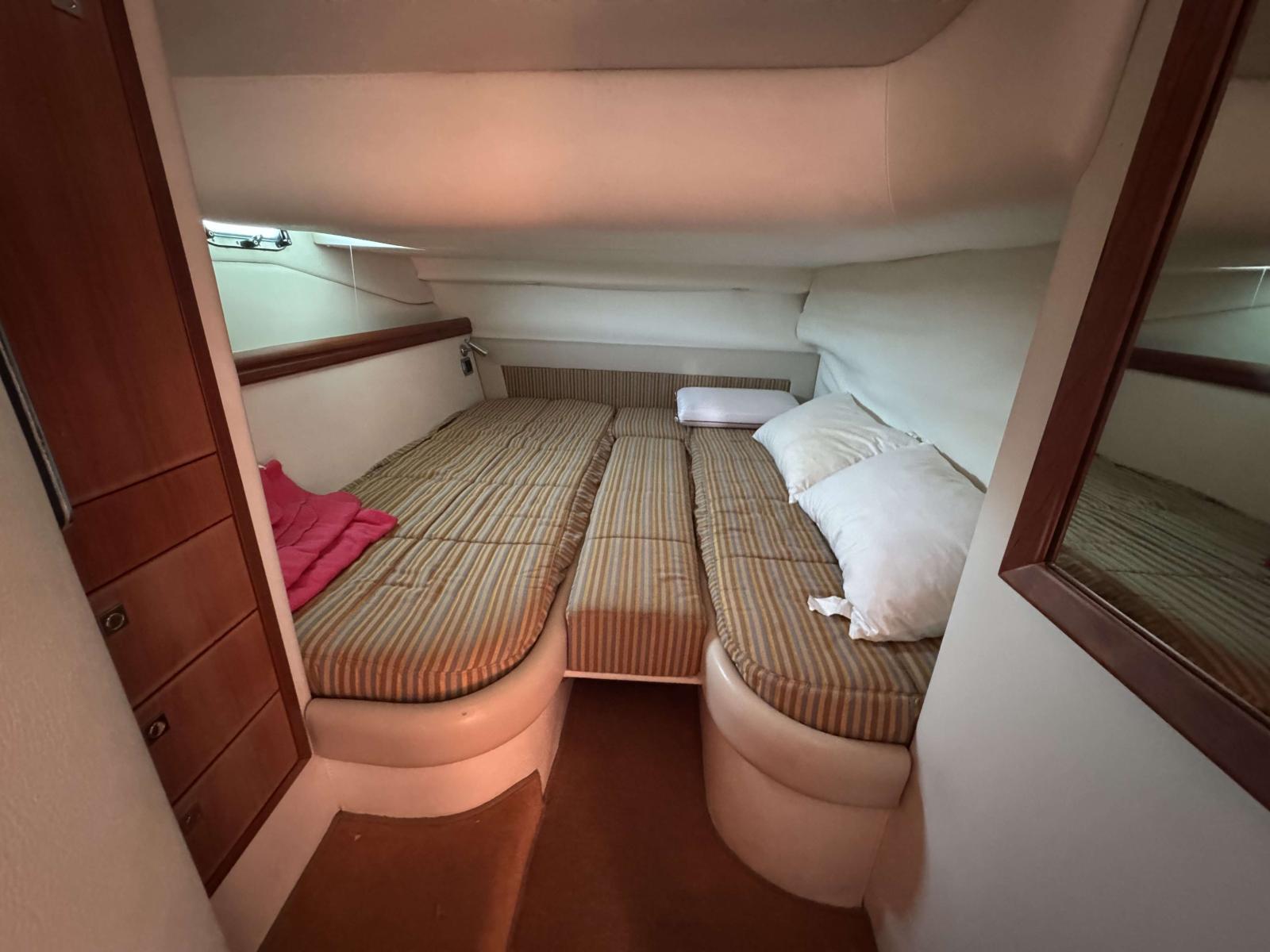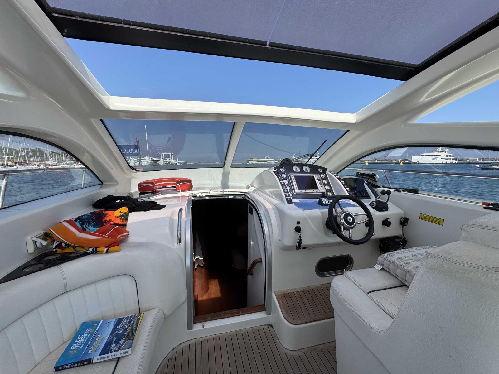 Propulsé par une motorisation Volvo IPS, ce bateau offre une manœuvrabilité appréciable et une navigation fluide. Bien que quelques travaux de rafraîchissement soient à prévoir, il reste un excellent support pour qui souhaite profiter d’un bateau de cette catégorie avec un fort potentiel.
