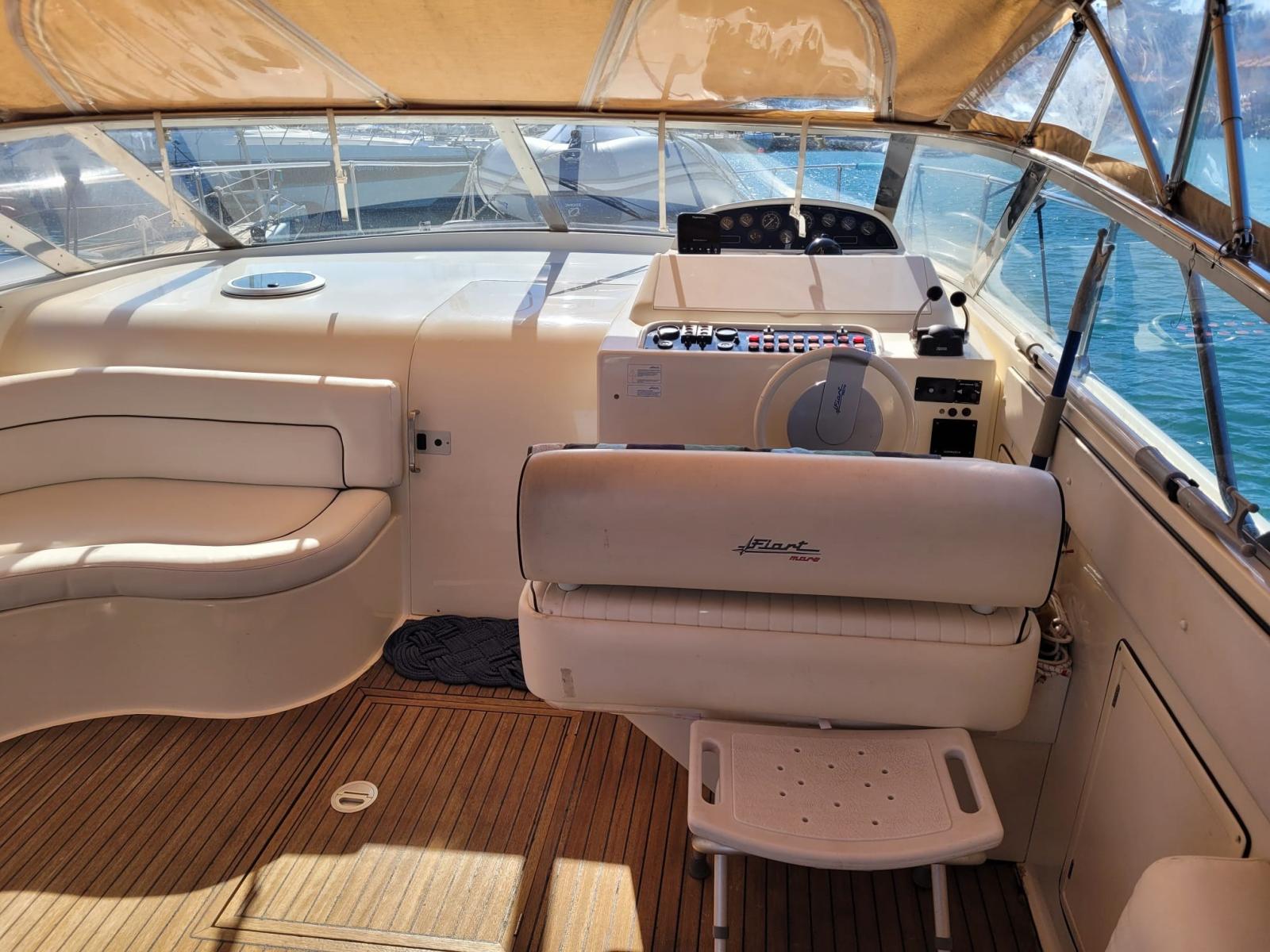 FIART 40 Open Mediterranean aux lignes pures avec un pont avant très grand et épuré, ainsi qu’un pare-brise aux formes acérées.