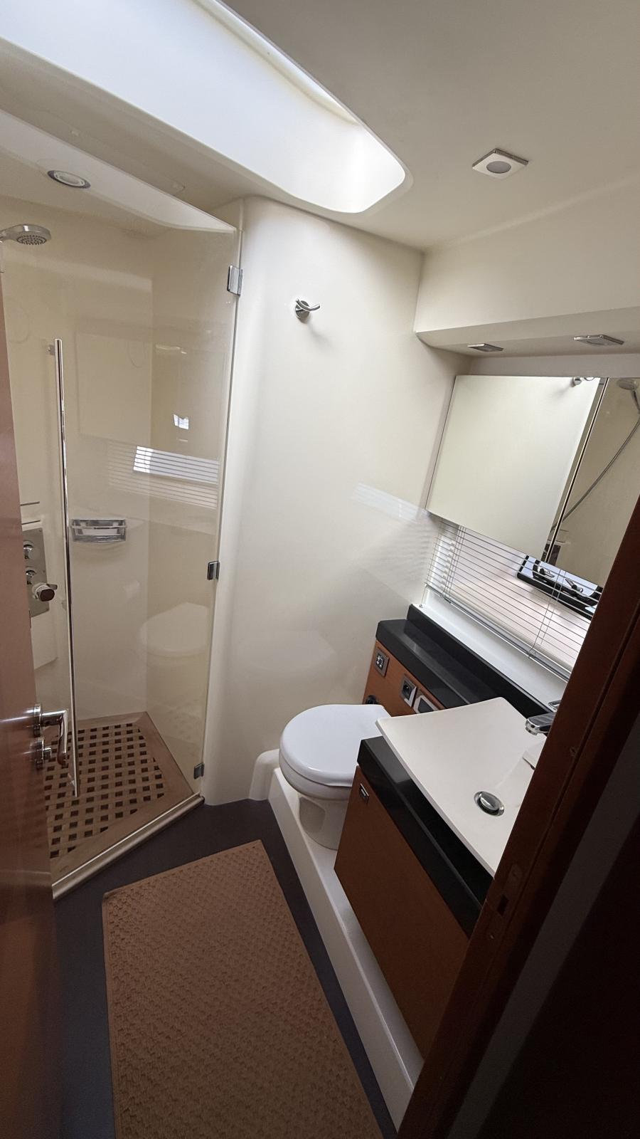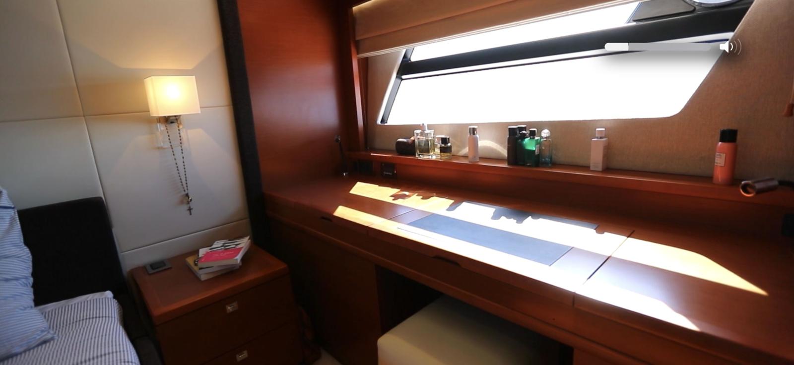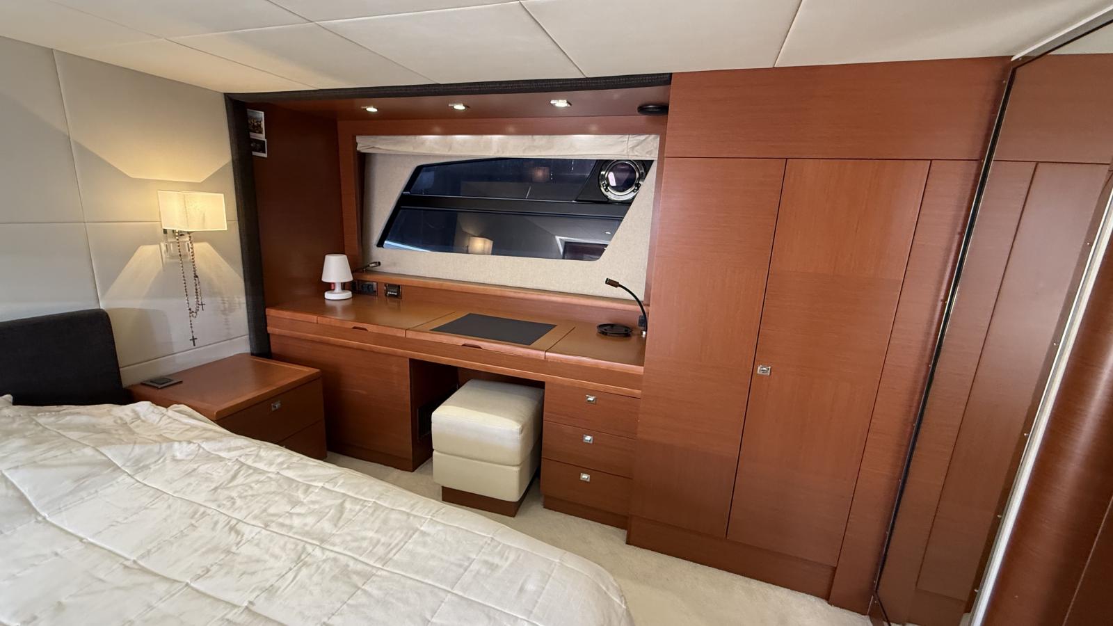 Sa suite propriétaire pleine largeur est située au milieu du navire, avec de grandes fenêtres, un excellent espace de rangement et une salle de bain spacieuse. La cabine VIP à l'avant et la cabine jumelée convertible à bâbord sont également bien conçues, rendant ce yacht idéal pour la croisière en famille ou l'utilisation par un propriétaire-opérateur.