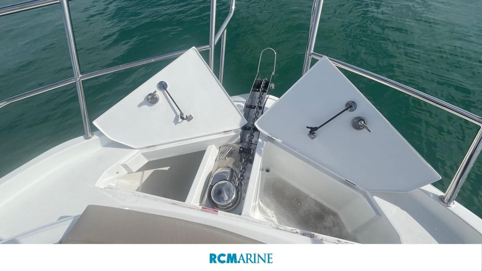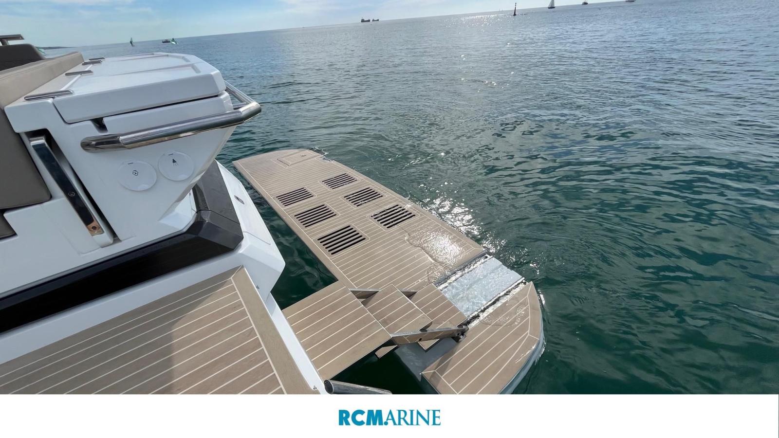 Le cockpit arrière offre un espace fonctionnel et bien pensé, avec le canapé et la table convertibles en bain de soleil. Le cockpit avant est un espace de loisirs, avec un grand matelas de bronzage. La version standard du yacht est propulsée par deux moteurs Volvo Penta.