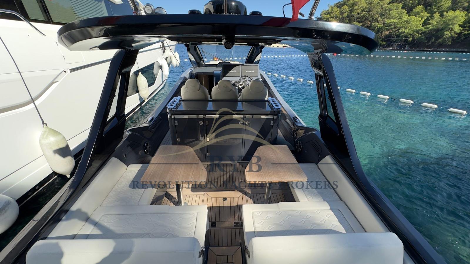 Passavant en teck, Éclairage de courtoisie, Plateforme arrière, Cockpit en teck, Guindeau électrique, table de cockpit, T-Top.