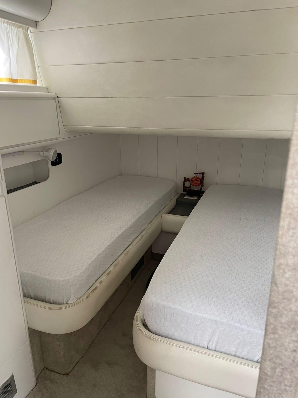 Alarme moteur, Eau sous pression, Douche de cockpit, Flaps hydrauliques, Plateforme arrière, Onduleur, Guindeau électrique, Echelle de bain.