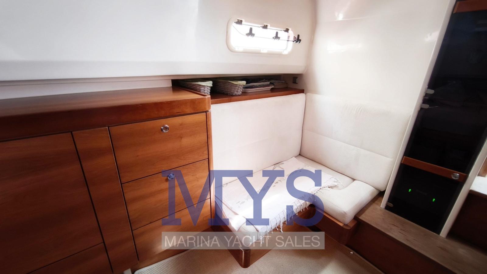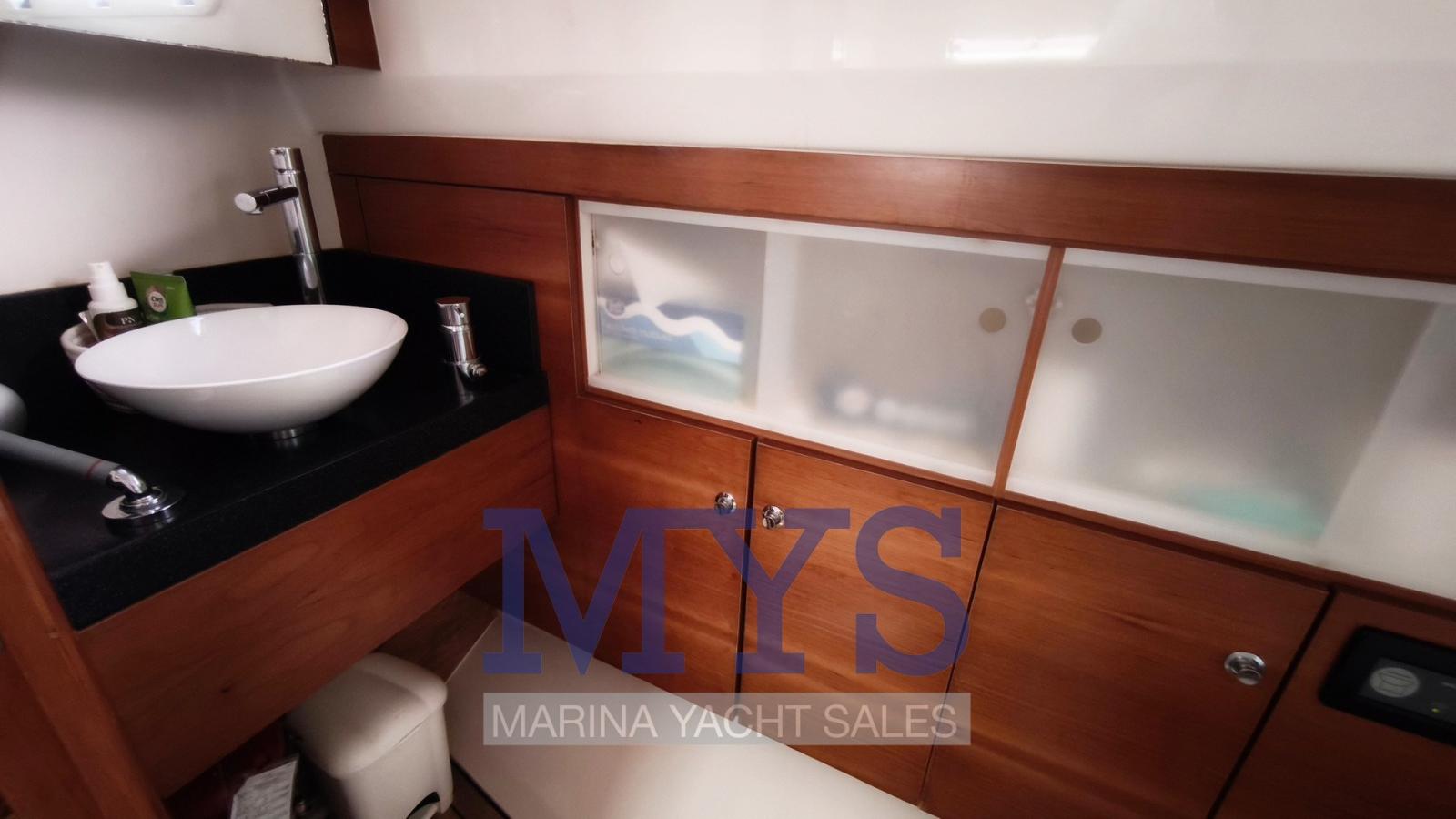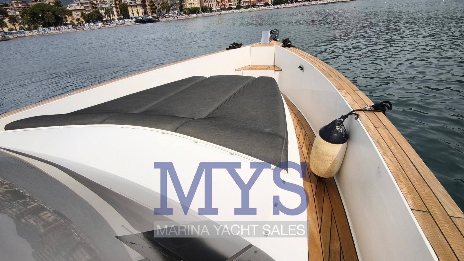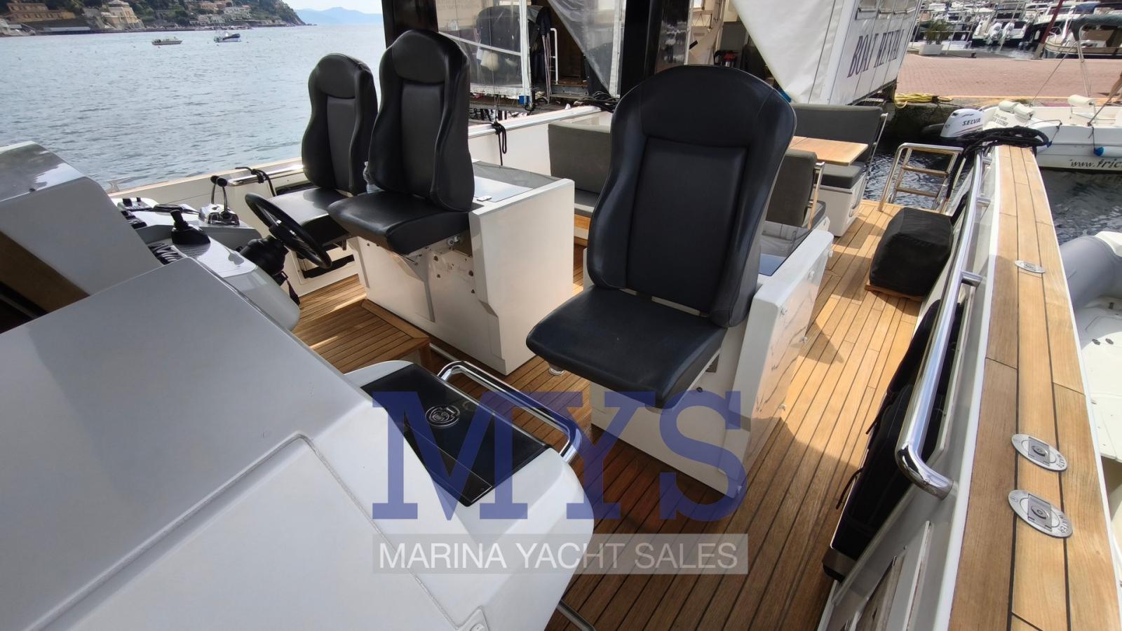 Alarme gaz, Alarme moteur, Alarme de pompe de cale, Ancre (10 kg + 70 mt di catena), Ouverture du compartiment moteur électrique, Eau sous pression, Batteries (4x145Ah per servizi + 2x100Ah per motore tutte 2024), Système de vidange, Passavant en teck, Douche de cockpit, Flaps hydrauliques, Lavabo dans le cockpit, Éclairage de courtoisie, Passerelle (non funzionante), Plateforme arrière (in teak), 2 Pompe de cale automatique, Pompe de cale manuelle, Pont en teck, Porte latérale, Cockpit en teck, Prise de quai, Guindeau électrique, Echelle de bain, table de cockpit (abbattibile), Corne, T-Top (rigido con parabrezza panoramico), Pont en teck.