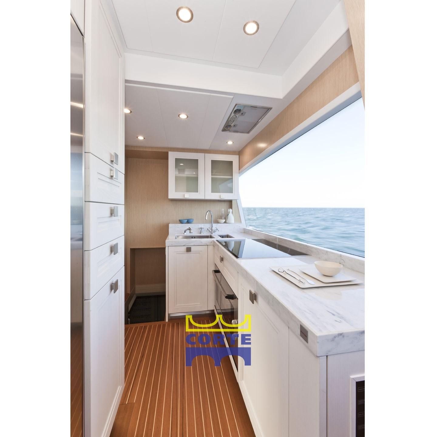 BBQ/ Grill (sul fly), Ballon d'eau chaude, Coffre-fort, Air Conditionné, Contrôleur domotique, Dessalinisateur (130 litri ora), Cuve à eaux noires, Convertisseur (per frigo e audio video), Prises interieures 12v, Prises interieures 220v, Toilettes électriques.