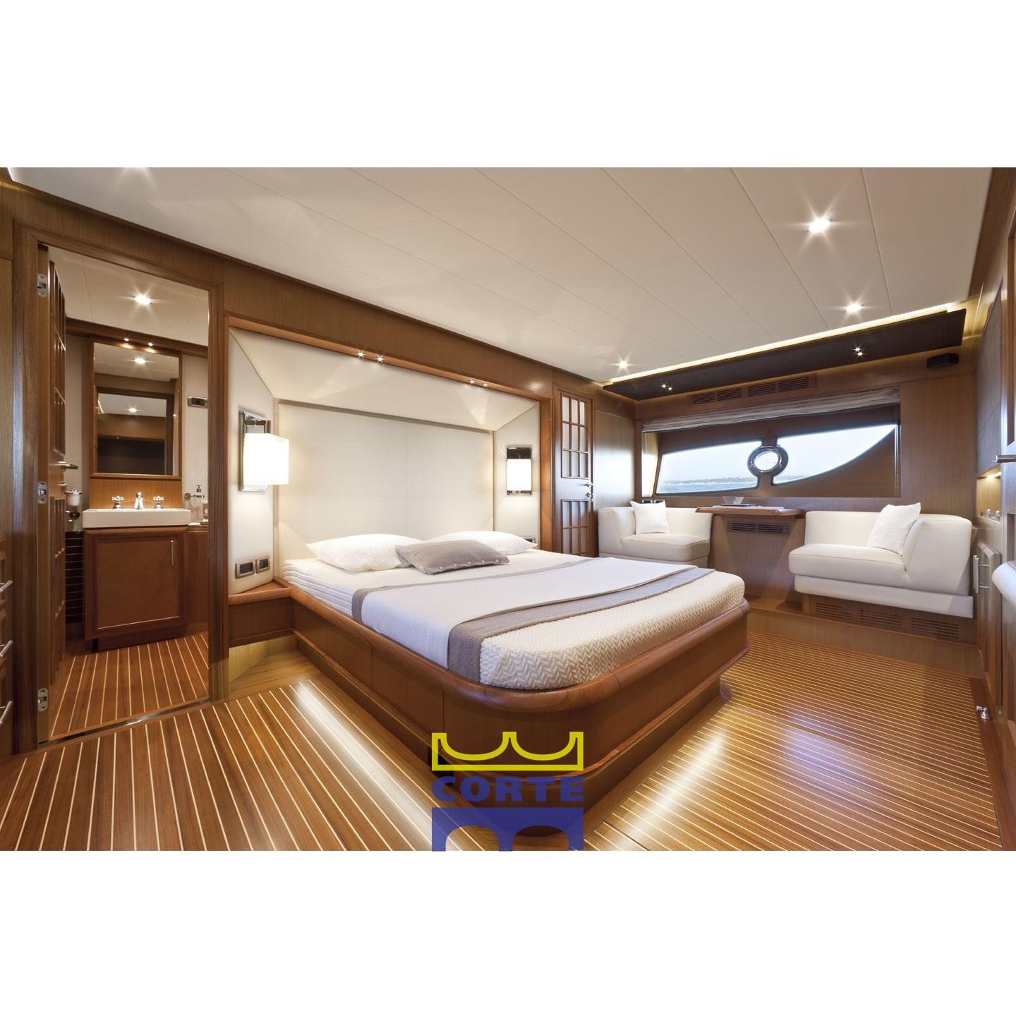 Alarme moteur, Alarme de pompe de cale, Ancre (maggiorata), Eau sous pression, Passavant en teck, Couleur spéciale, Douche de cockpit, Double barre à roue, Phare de poursuite, Flaps hydrauliques, Garage à annexe, Extincteur(s) fixe(s), Indicateurs de flaps, Lavage de chaine, Éclairage de courtoisie, Spots sous-marins, Passerelle (a scomparsa elettro idraulica), Plateforme arrière (poppa ribaltabile), Pompe de cale automatique, Porte latérale, Porte latérale, Cockpit en teck, Prise de quai, Connexion eau sous pression à quai, Guindeau électrique, Echelle de bain, Stabilisateurs (Antirolling Mitsubishi), table de cockpit (con alloggiamento poltroncine oieghevoli), Annexe (con fuoribordo 40 hp), Corne, 2 Winch électrique arrière.