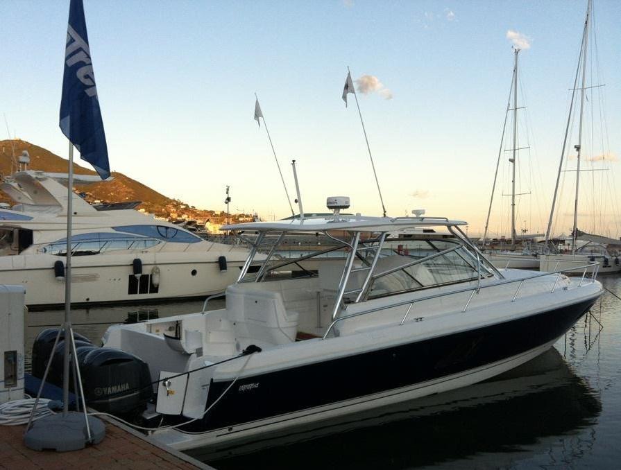 Alarme gaz, 4 Alarme moteur, Alarme de pompe de cale, Ancre (Bruce), Eau sous pression, Couleur spéciale (Blue Navy), Douche de cockpit (con miscelatore), Propulseur d'étrave (con batteria dedicata), Phares fixes arrière, Phare de poursuite (di profondità), Flaps électriques (Keikafer), Hard top (con laterali trasparenti), Extincteur(s) fixe(s), Éclairage de courtoisie, Spots sous-marins, Plateforme arrière, 3 Pompe de cale automatique, Porte latérale, Prise de quai, Connexion eau sous pression à quai, Onduleur, Guindeau électrique, Echelle de bain (a scomparsa), table de cockpit, Filières avec sortie latèrale, Corne, Winch électrique avant.