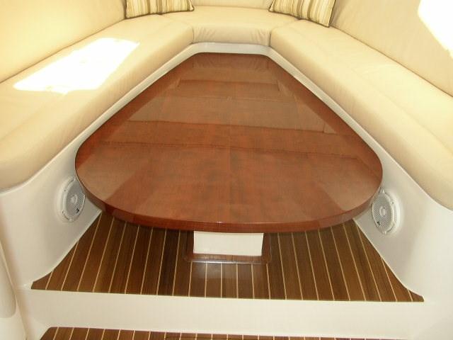 Porte latérale sur le côté - Pompe à eau salée pour le lavage du cockpit - Nez d’étrave en acier inoxydable - Table électrique.
