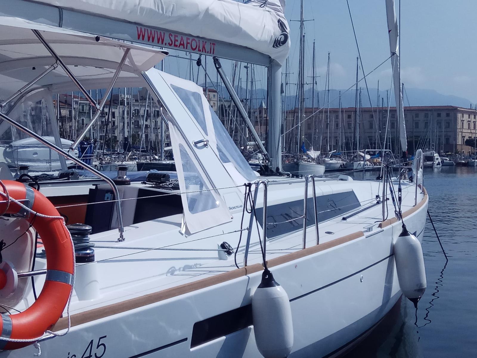 Alarme moteur, 2 Ancre, Eau sous pression, 5 Batteries (4+1 motore), Douche de cockpit, Pompe de cale manuelle, Cockpit en teck, Guindeau électrique, 4 Winch.