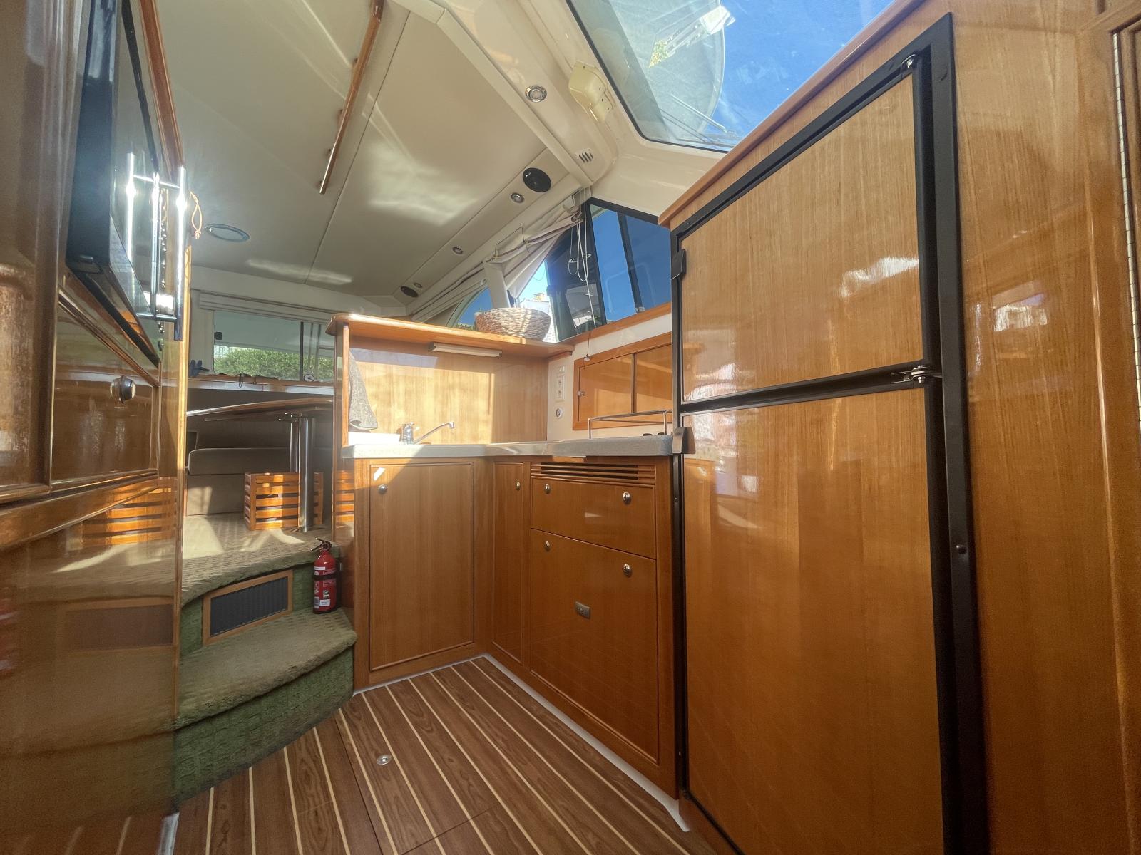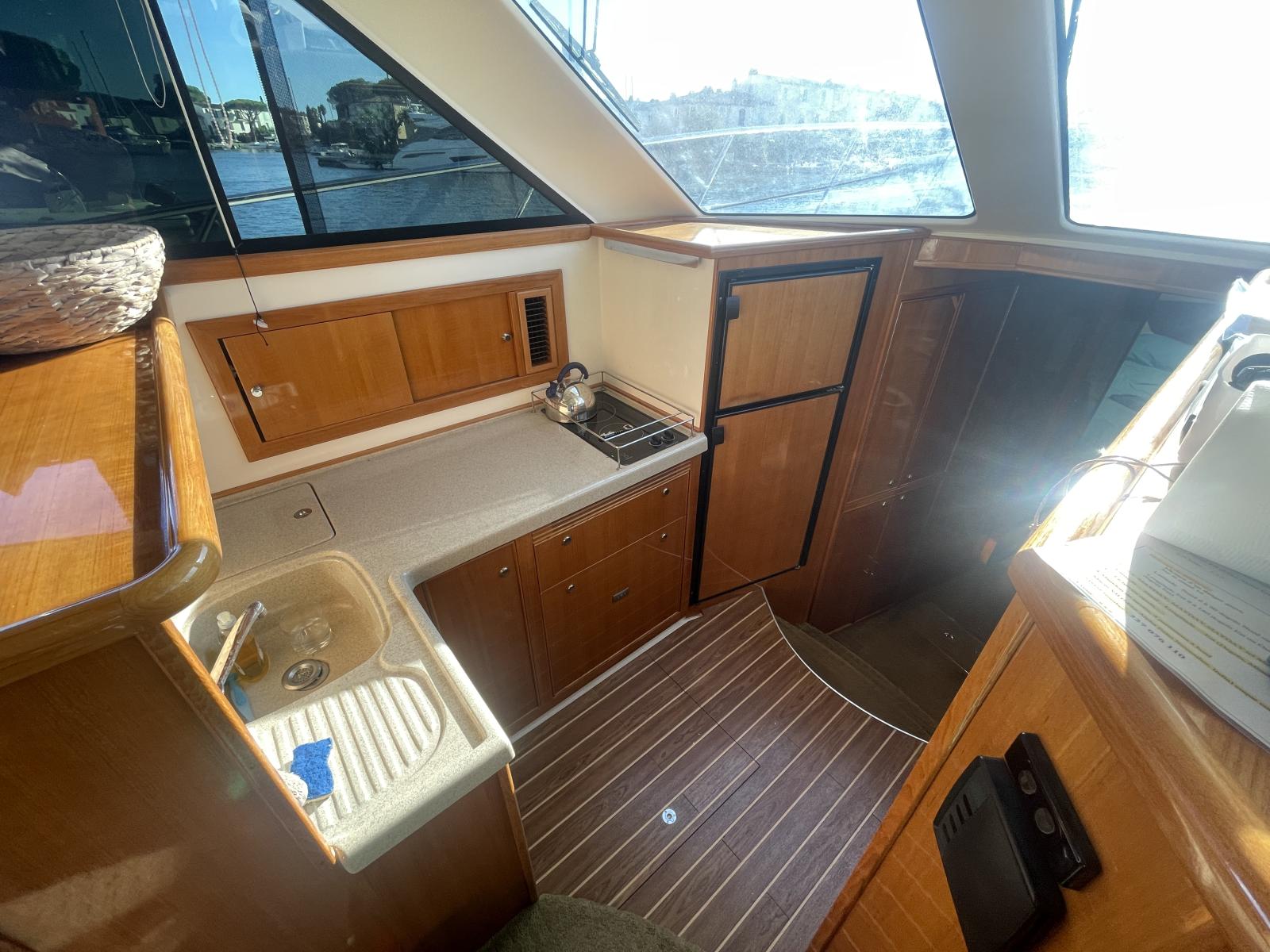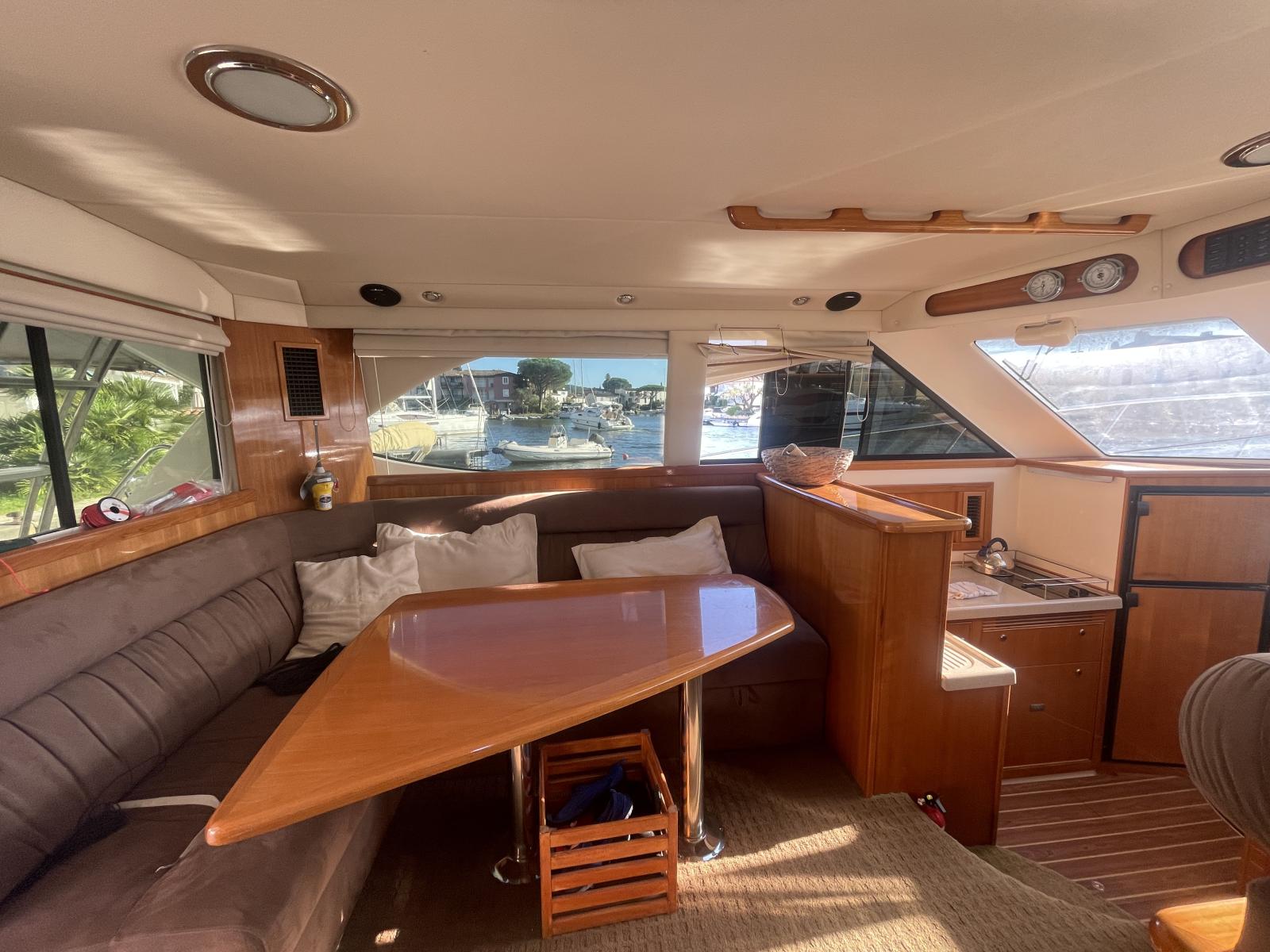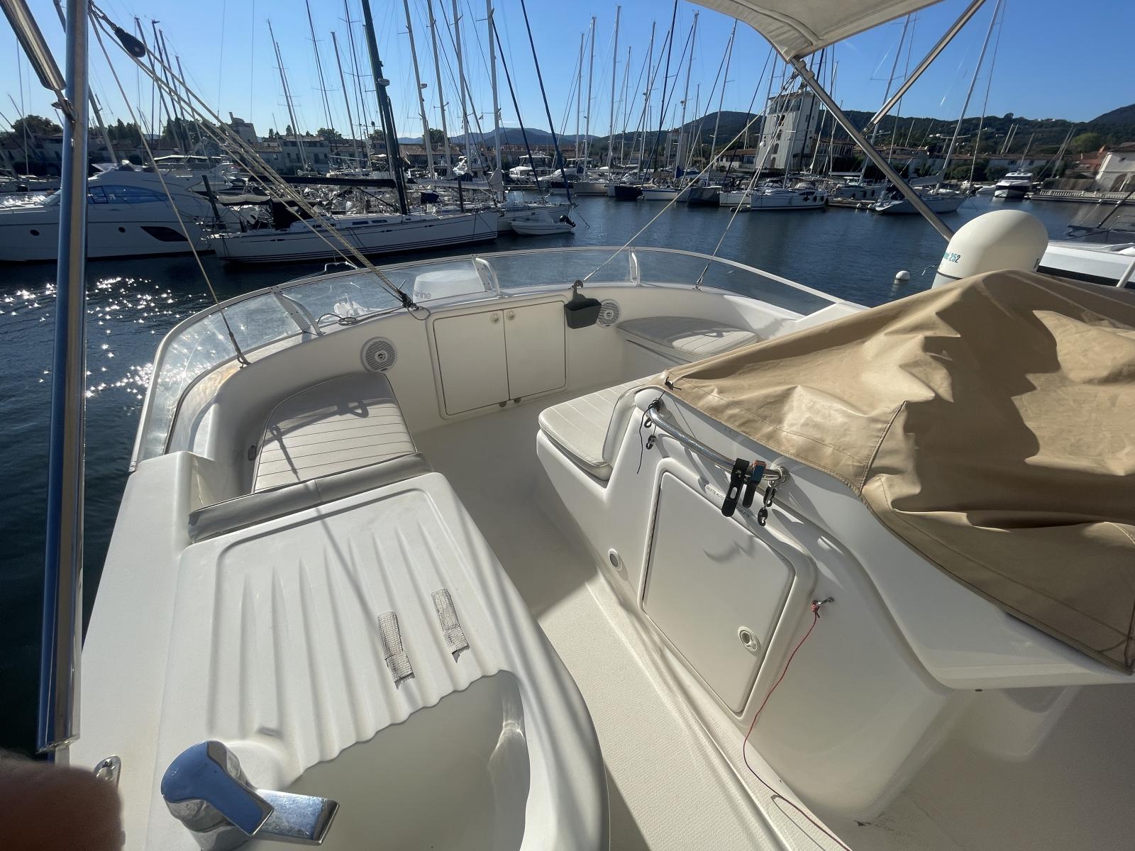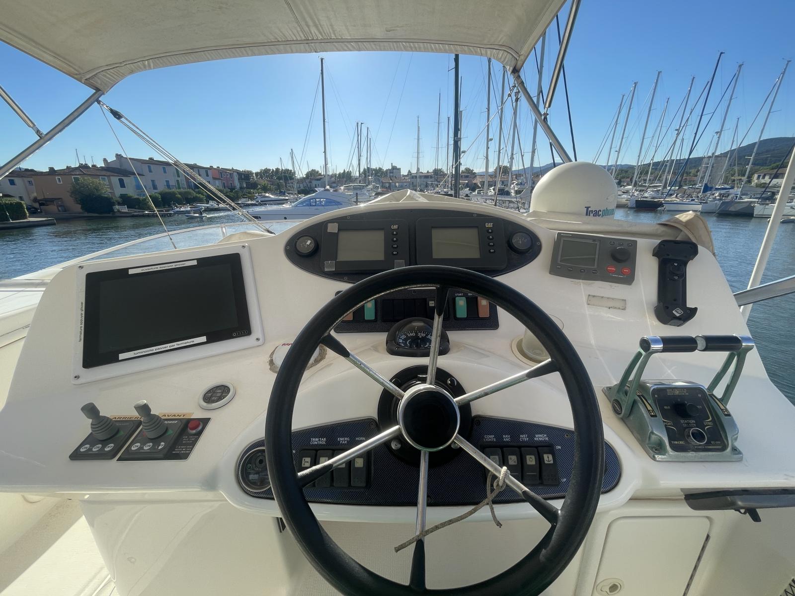Celui-ci est équipé de nombreuses options: propulseur d'étrave, propulseur de poupe, passerelle hydraulique, électronique Raymarine récent (GPS, sondeur, radar), Pilote automatique Raymarine, VHF fixe et portable, dessalanisateur, guideau électrique refait en 2024, générateur Onan, lave linge, climatisation réversible, annexe, etc.
