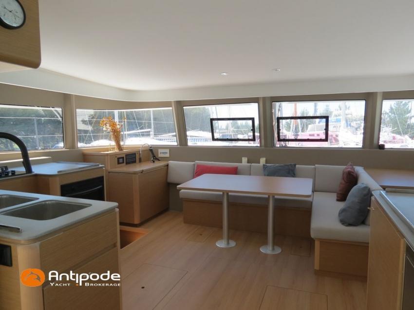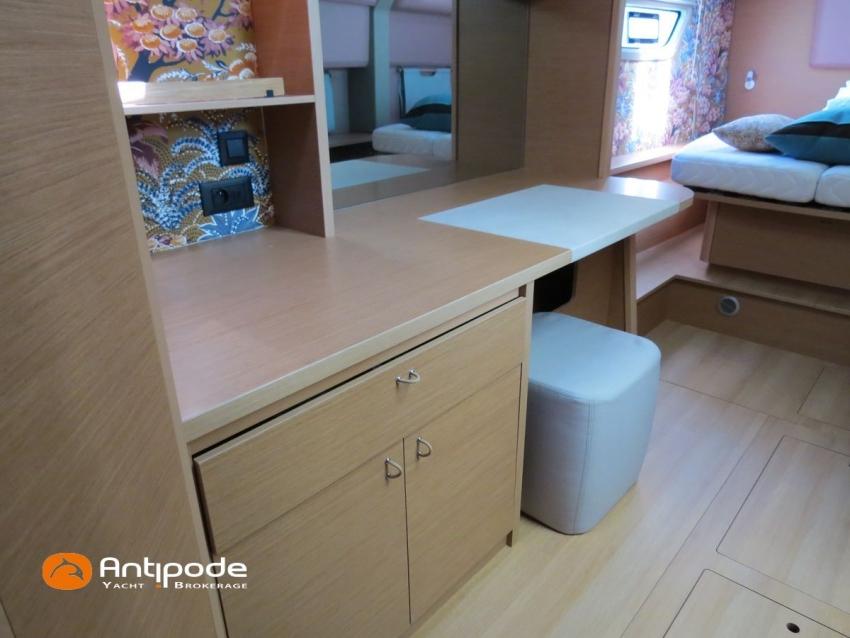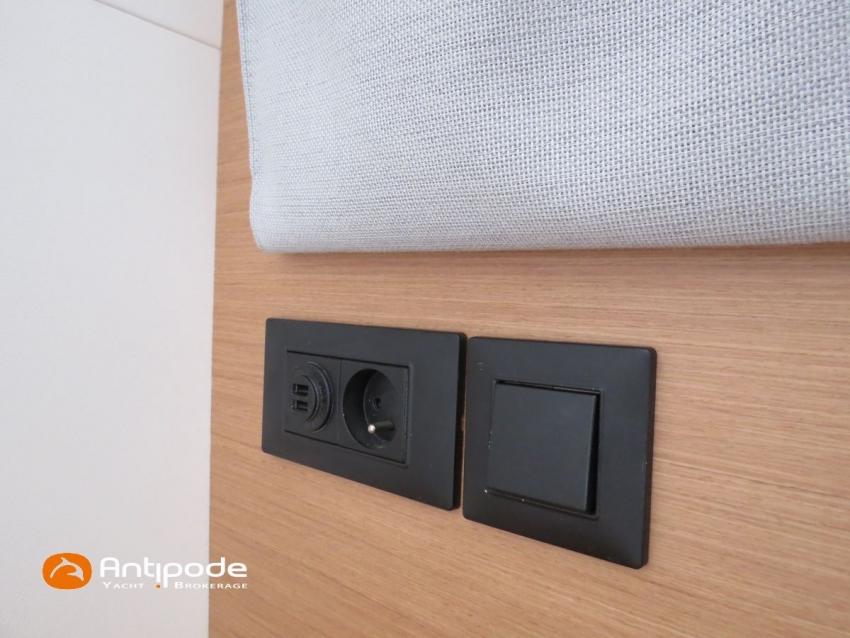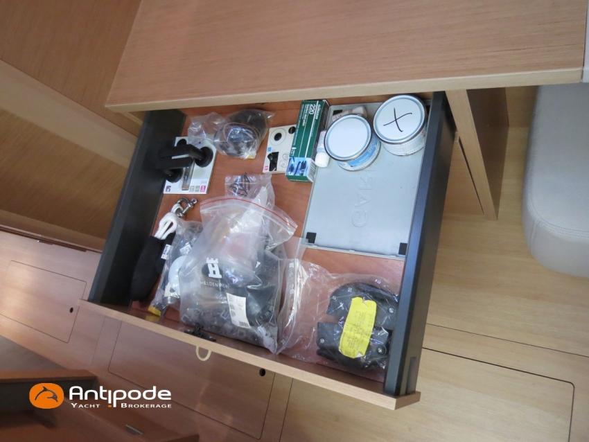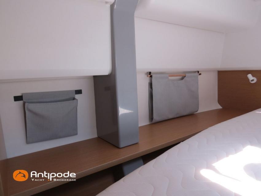 EXCESS 14, 2023, bateau de propriétaire 1ère main, jamais loué, vente HT possible, leasing possible, place de port Bretagne possible,2 X Yanmar , 2 X 57 cv (480 h), Sail Away pack, Version d'aménagement intérieur 3 cabines, Couchage supplémentaire dans dressing avant coque tribord, Couchette dans pointe avant babord, 3 cabinets de toilettes et douche, Menuiseries intérieures standard avec planchers optionnels valley, Cuisine : plan de travail optionnel en Kerrock, 1 winch electrique à tribord - Harken, Winch électrique pour réglage charriot écoute GV - Flatwinder Harken, Bossoirs arrière composites gris pour annexe, Siège double repliable sur poste de barre tribord, Barre à roues composites (orange) - Carbonautica, Fermeture complète du cockpit (toiles de tour) - Charcoal Grey, Table de cockpit en bois (en remplacement table de cockpit standard polyester), avec rallonge, Coussins de cockpit gris, Compteur de chaine et commande au cockpit, Version Gréement Pulse Line (mât rallongé + 1.76 m), Surface de voile au près augmentée à 135 m2 (+ 12 m2 par rapport au gréement standard, Covering noir sur mât, Gréement courrant Dyneema, Grand voile à corne triradiale laminé Exrp Ekko gris - Elvstrom, Genois à recouvrement Ekko gris - Elvstrom, Code 0 Pulse line (86 m2 - 14 m2 de plus que la version standard), tissu compostye BZ60 avec UV noir - Elvstrom, Spi asymétrique 191 m2 - Elvstrom, Chaussette à spi, Pack electronique - Garmin, Pilote automatique in board - Garmin, GPS / lecteur de carte dans le cockpit poste de barre tribord - Garmin GPS MAP 12 , Cartographie électronique, Transpondeur AIS (émetteur récepteur) - AIS 500 Raymarine, VHF B & G V 100 B, Batteries moteurs 2 X 50 amp AGM, Batteries service 6 X 95 amp AGM, Alternateurs moteurs 12 V 125 amp, Convertisseur 12 V / 220 V - 2 KVA, WC électriques X 3 (eau de mer), dessalinisateur 120 l/h, Réservoir eau douce supplémentaire (+ 300 litres) , Pompe à pied eau de mer avec robinet dédié, Pompe de lavage de pont eau de mer / eau douce, Feux de navigations à Leds, Eclairages intérieurs et extérieurs à Leds, Radeau de survie, Mouillage principal (ancre 20 kg, chaine D10 X 75 m, 20 m bout D 18, Visible Bretagne. Pour plus d'informations ou pour fixer un rendez-vous de visite, contact : Jérôme Le Joubioux 06 07 45 71 73 - jerome@antipode-yachts.com