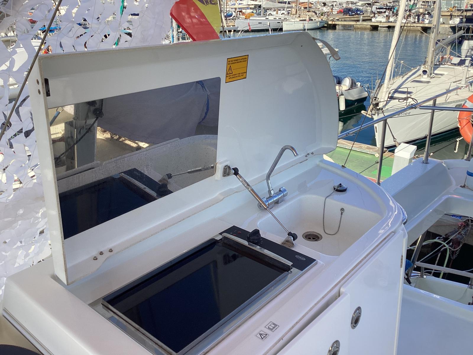 Ce trawler est un bateau très confortable conçu pour rester au mouillage si vous ne souhaitez pas entrer dans le port grâce à sa grande autonomie en énergie et en eau douce.