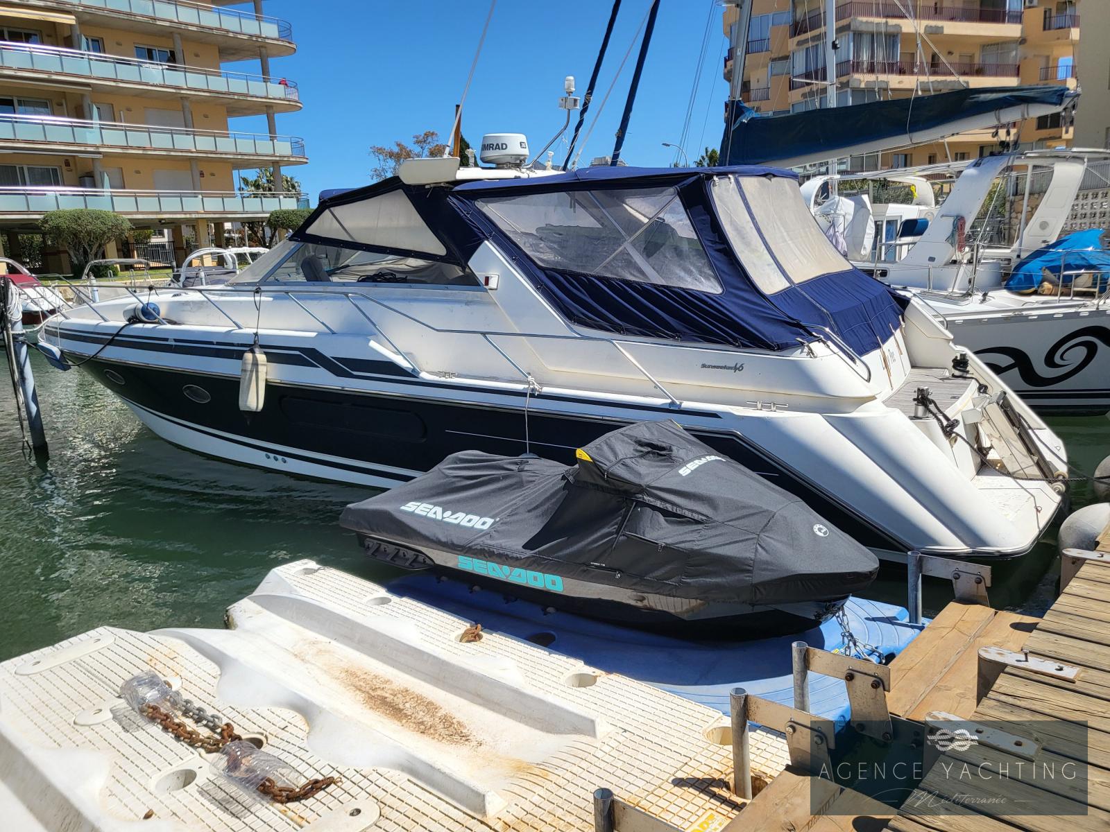 Superbe Sunseeker 46 Camargue, modèle emblématique de 1992, alliant luxe, puissance et élégance.