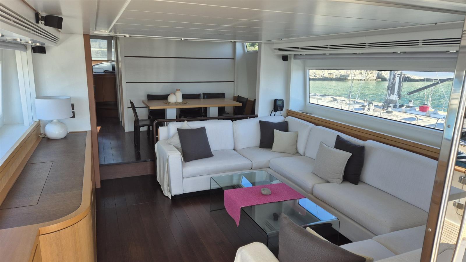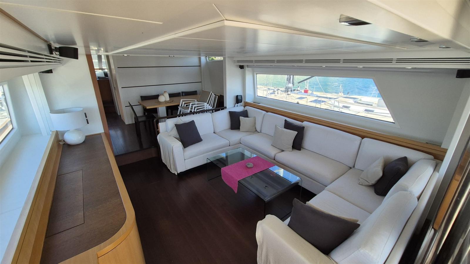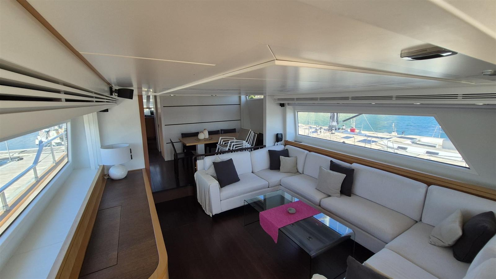 Alarme moteur, Alarme de pompe de cale, Eau sous pression, Passavant en teck, Douche de cockpit, Extincteur(s) fixe(s), Lavabo dans le cockpit, Passerelle, Pompe de cale automatique, Pont en teck, Porte latérale, Porte latérale, Cockpit en teck, Onduleur, Selles pour Annexe, table de cockpit.