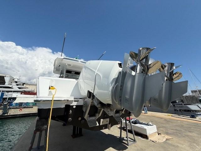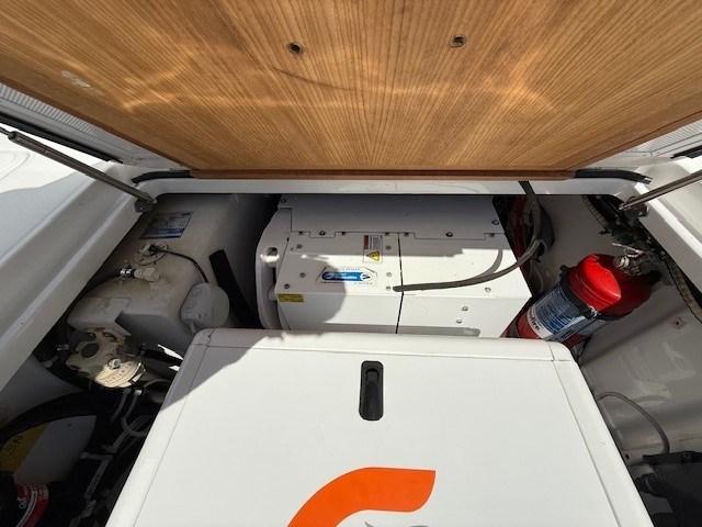 Alarme gaz, Alarme moteur, Alarme de pompe de cale, Alternateur, Eau sous pression, 5 Batteries, 2 Chargeur de batterie, Phare de poursuite, Hard top, Indicateurs de flaps, Prise de quai, Guindeau électrique, Echelle de bain, Stabilisateurs (seekeper), table de cockpit.