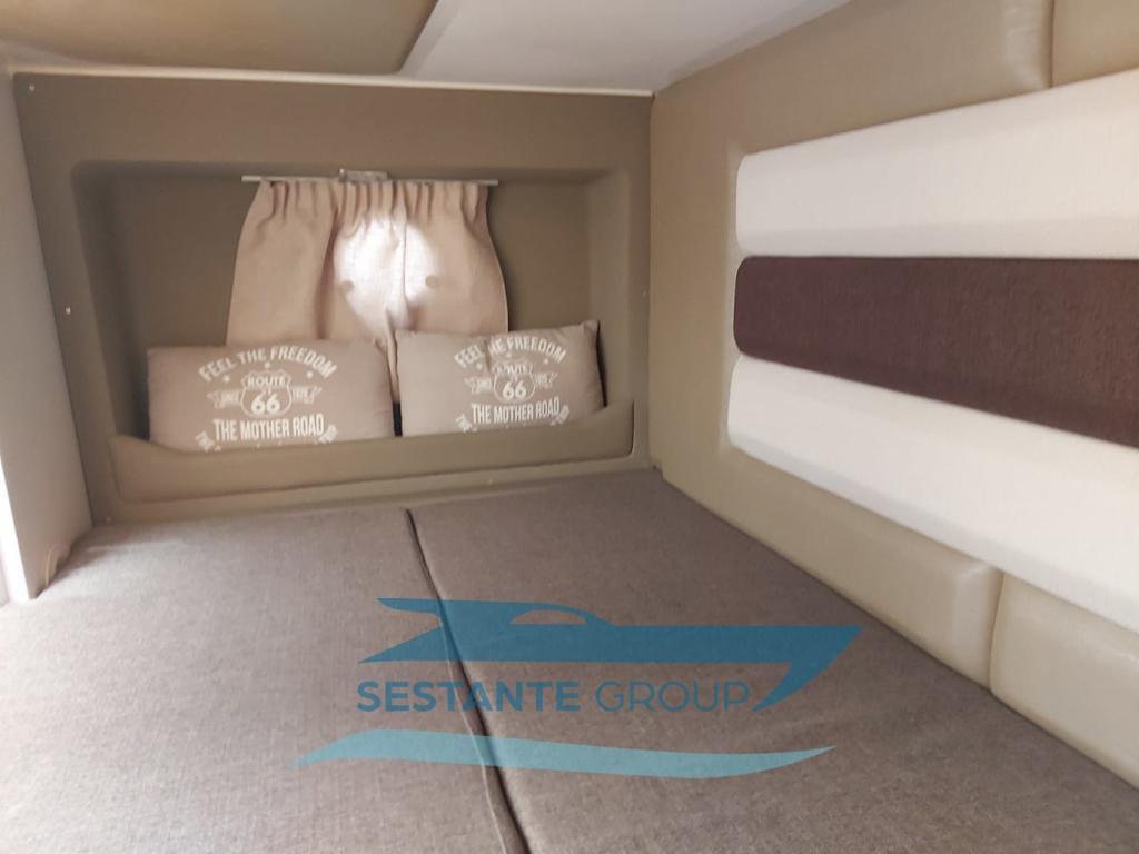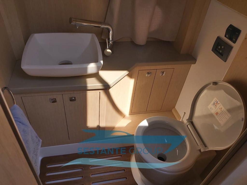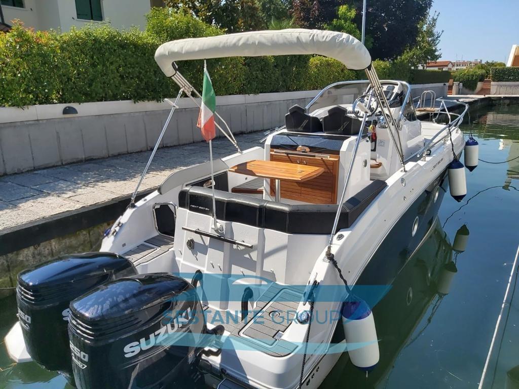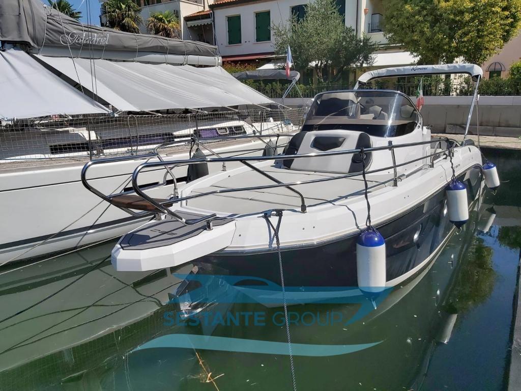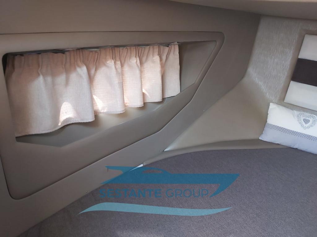 Alarme moteur, Eau sous pression, 3 Batteries (100 Ah), Couleur spéciale, Douche de cockpit, Lavabo dans le cockpit, Éclairage de courtoisie, Spots sous-marins, Pompe de cale automatique, Pont en teck (Seadek), Porte latérale, Cockpit en teck (Seadek), Prise de quai, Guindeau électrique, Echelle de bain, table de cockpit, Table pliante de salon, Corne.