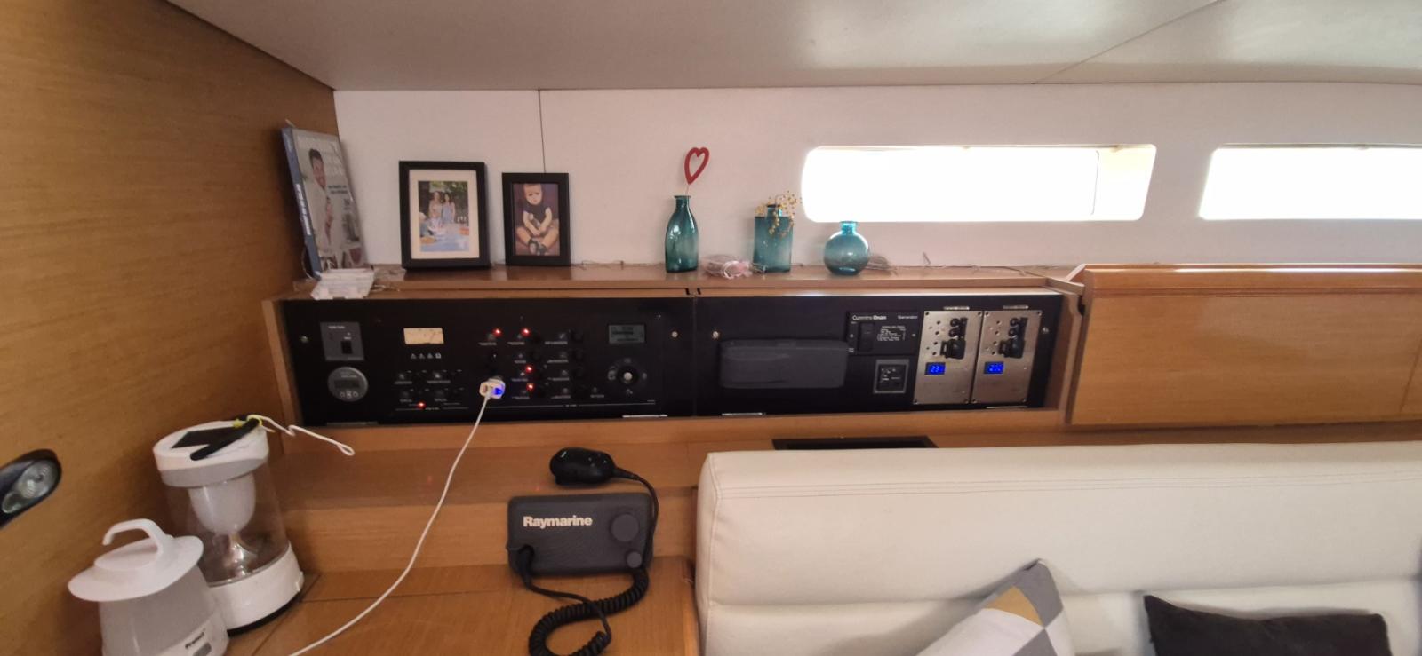 Générateur 6Kw 3405 H, propulseur d'étrave tunnel, hélices tripales repliables, télévision, congélateur, gestionnaire de batterie, 5 batteries de 110Ah de 2023, panneaux solaire 660W de 2023, , climatisation du carré et des cabines, convertisseur de 2500W MASTER VOLT, prise d’eau douce de quai, TV de 80 cm, passerelle, machine à laver le linge de 2023 8kgs,