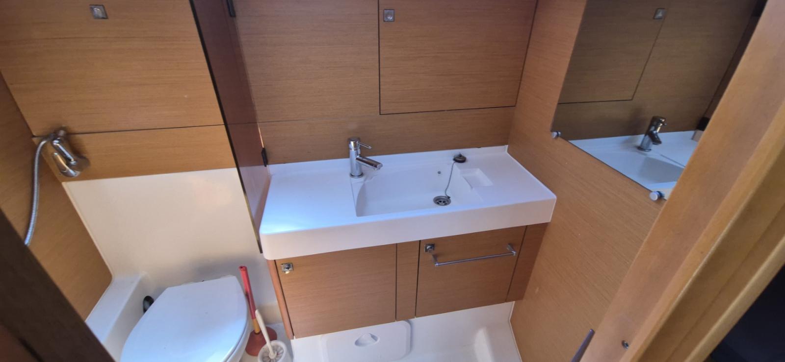 Belle unité solide et bien pensée, prête à repartir au large après deux transatlantiques. Version 3 cabines avec buanderie, volumes généreux, cockpit convivial et large plage arrière à fleur d’eau. Très bien équipé pour la grande croisière.
